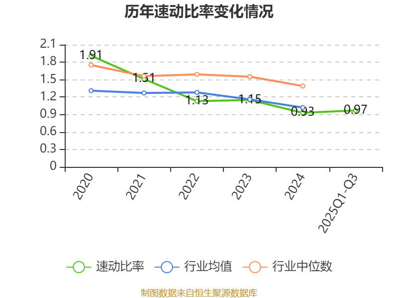 2025年前三季度,公司流动比率为1.2,速动比率为0.97。