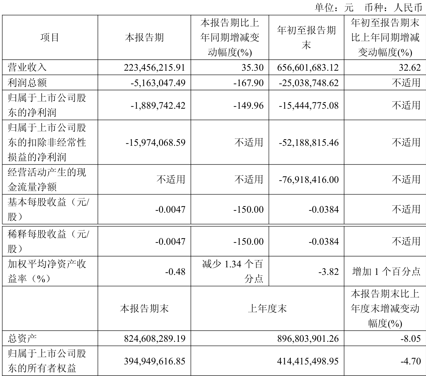 中证智能财讯华升股份(600156)10月28日披露2025年第三季度报告。前三季度公司实现营业总收入6.57亿元,同比增长32.62%;归母净利润亏损1544.48万元,上年同期亏损2183.97万元;扣非净利润亏损5218.88万元,上年同期亏损3311.72万元;经营活动产生的现金流量净额为-7691.84万元,上年同期为-5327.83万元;报告期内,华升股份基本每股收益为-0.0384元,加权平均净资产收益率为-3.82%。