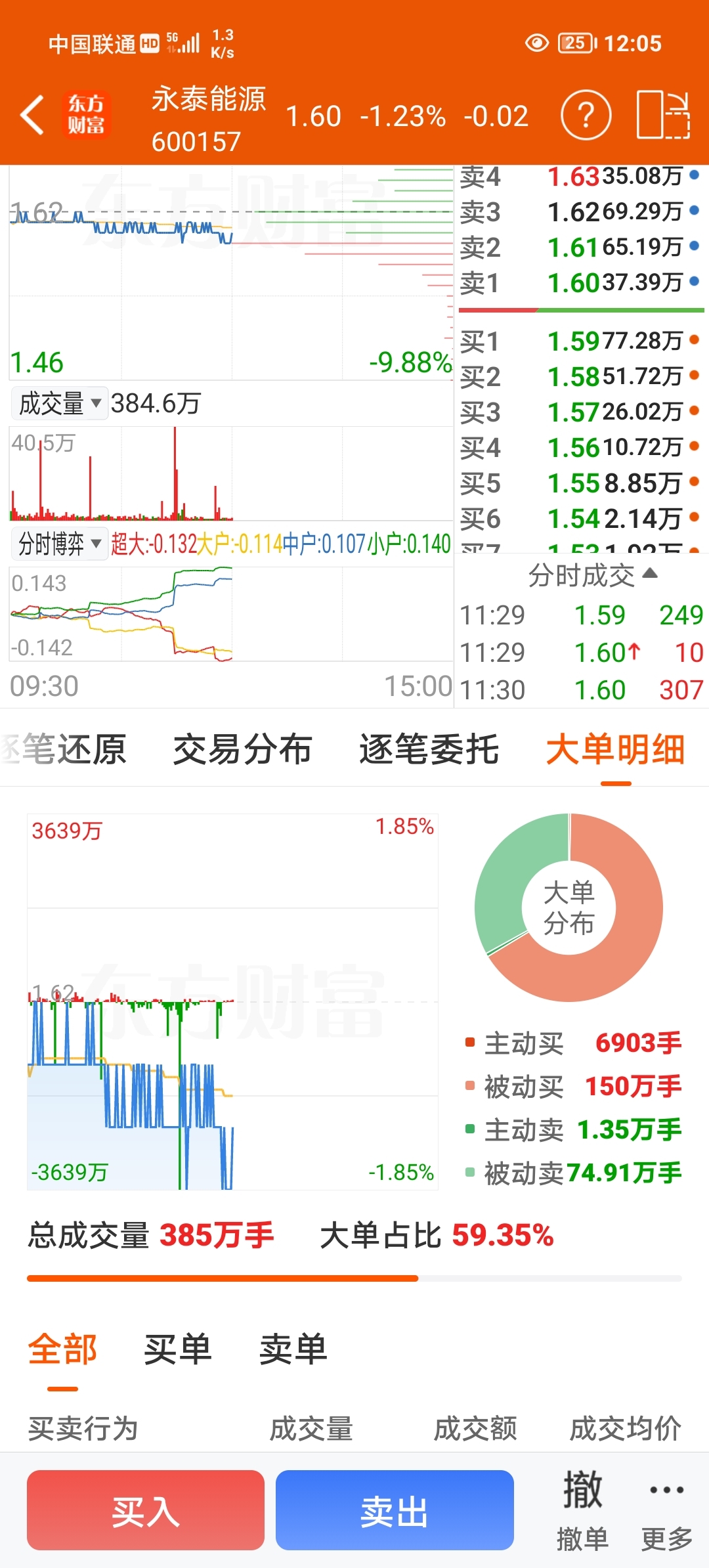 $永泰能源(SH600157)$ 被动买150万手。。。。