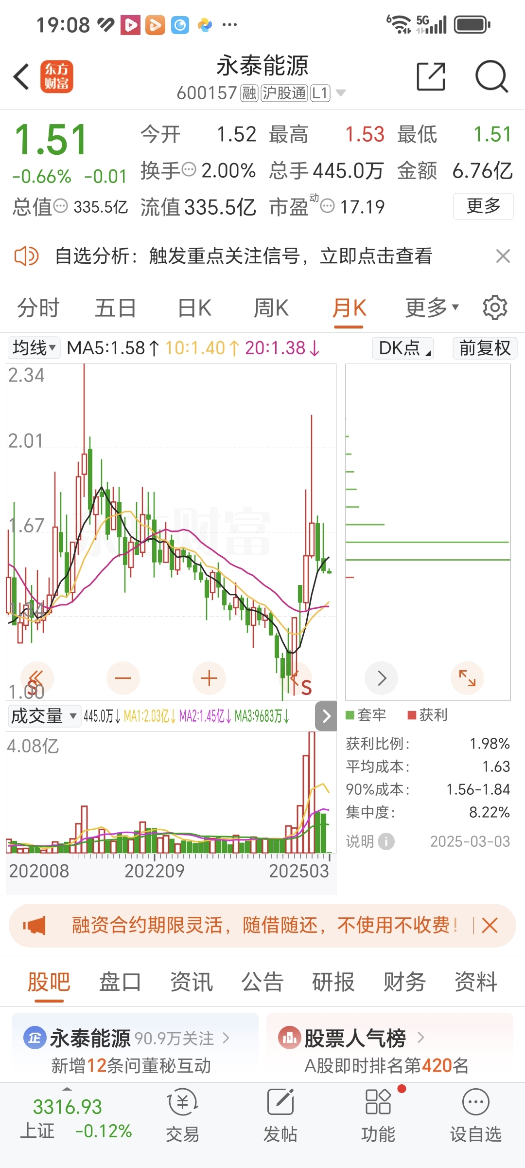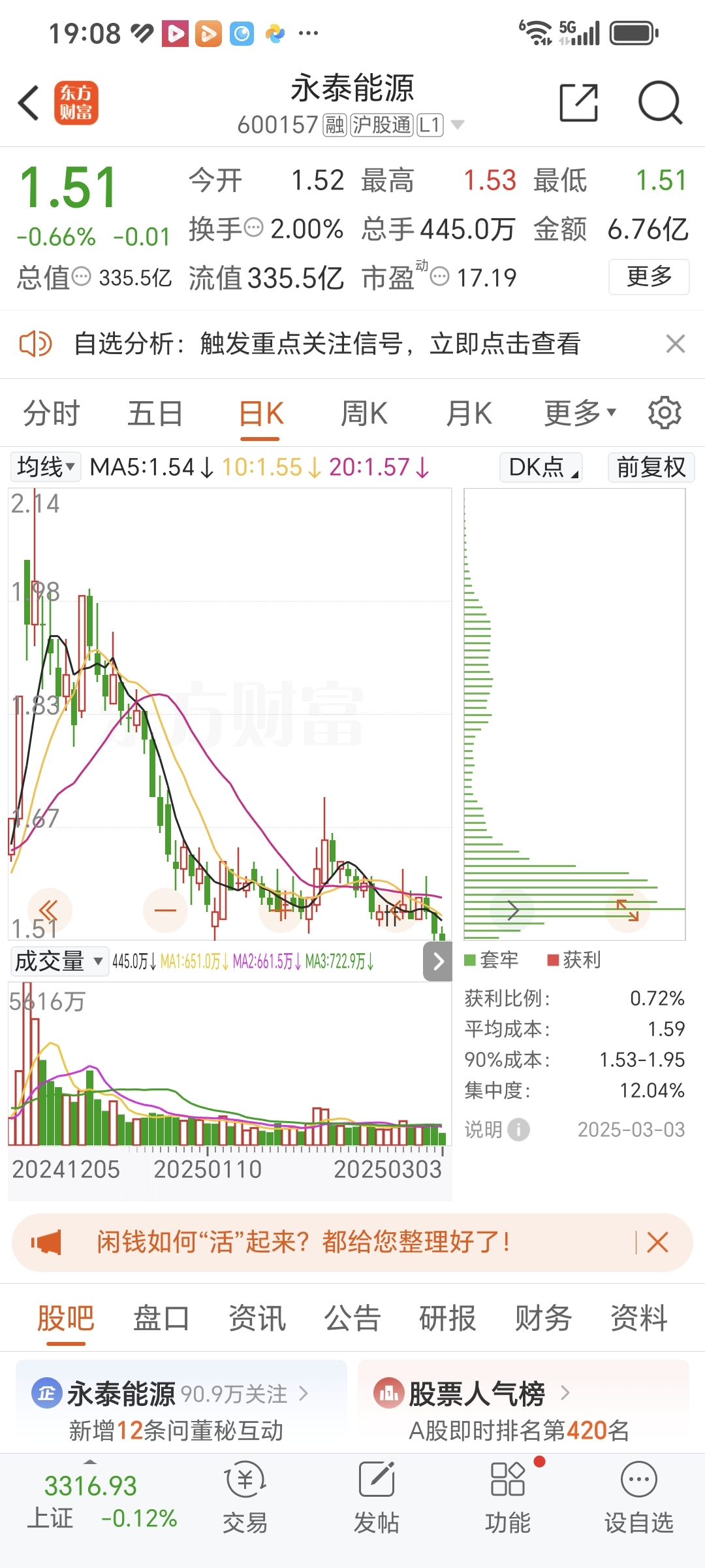 外面都是几十元一股,只有永泰能源铁公鸡,一毛不拔,才一元多一股
