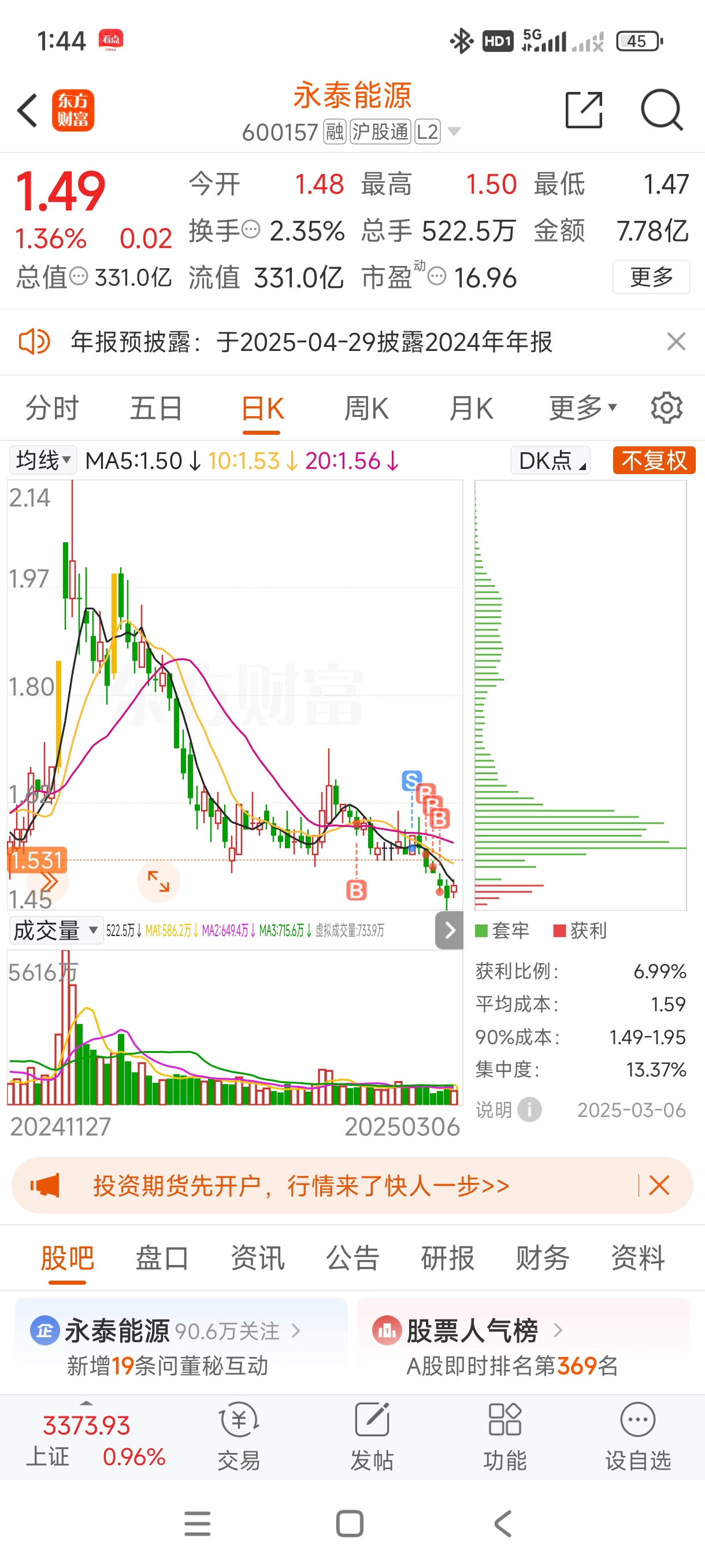 $永泰能源(SH600157)$ 一支90%以上都被套的股,一群托天天在这唱空,制造恐慌,想干嘛?。你有本事继续跌,我还买。