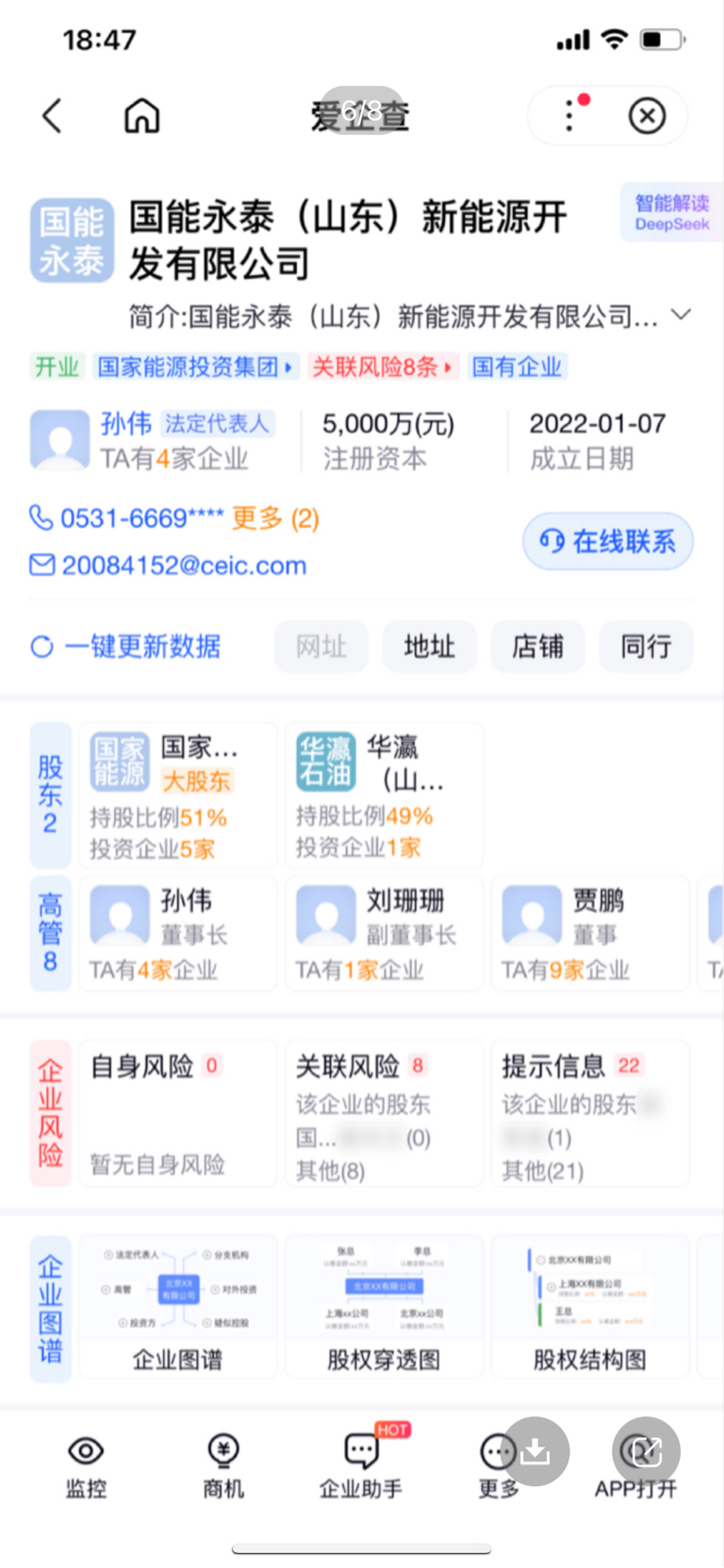 $永泰能源(SH600157)$ 2022年1月7日永泰能源与国家能源新能源(山东)新能源有限公司(国家能源投资集团100%控股→国务院100%控股)成立国能永泰(山东)新能源开发有限公司(国家能源占比51%,永泰集团占比49%)。