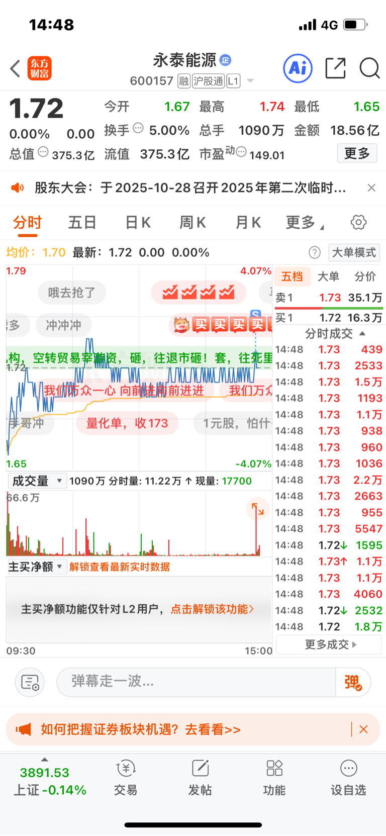 $永泰能源(SH600157)$ 卖了卖了,明天低开在买回来