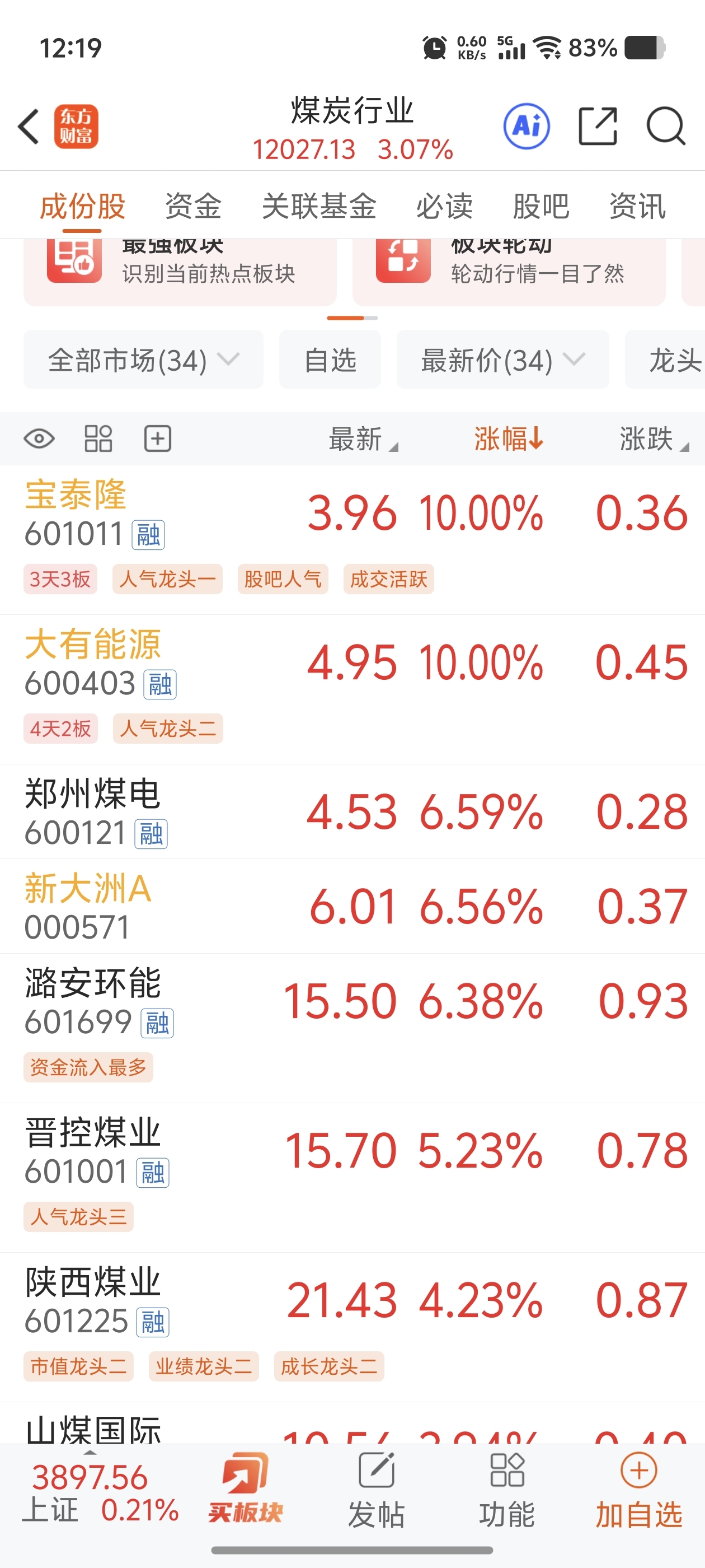 煤碳板块3个多点了,永泰能源还跌了1分,无语了