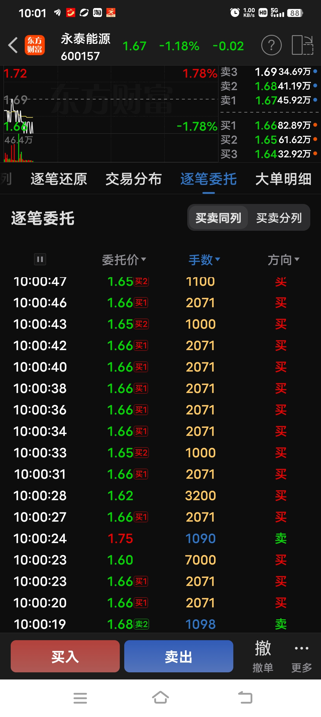 $永泰能源(SH600157)$ 别看买单2071手这么多显示,其实都没成交,频繁下单撤单,像这种扰乱市场数据行为没人管吗?