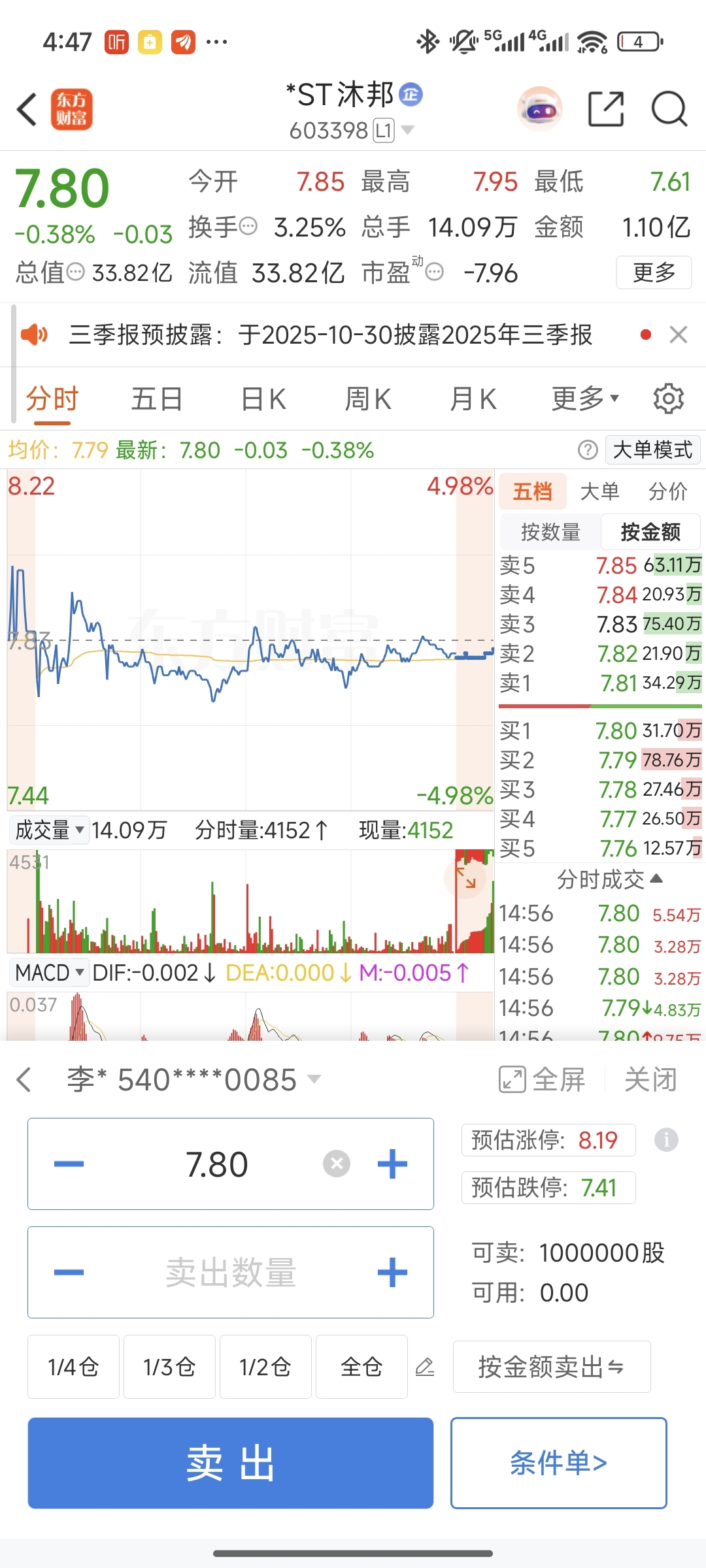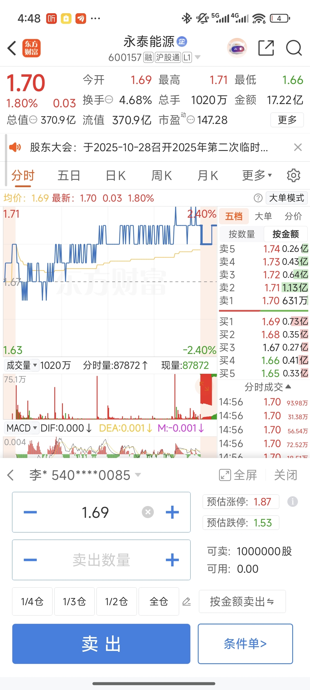 为毛都有可卖100万股???怎么回事!还可以挂单!从同花顺转过来刚注册的新号!搞