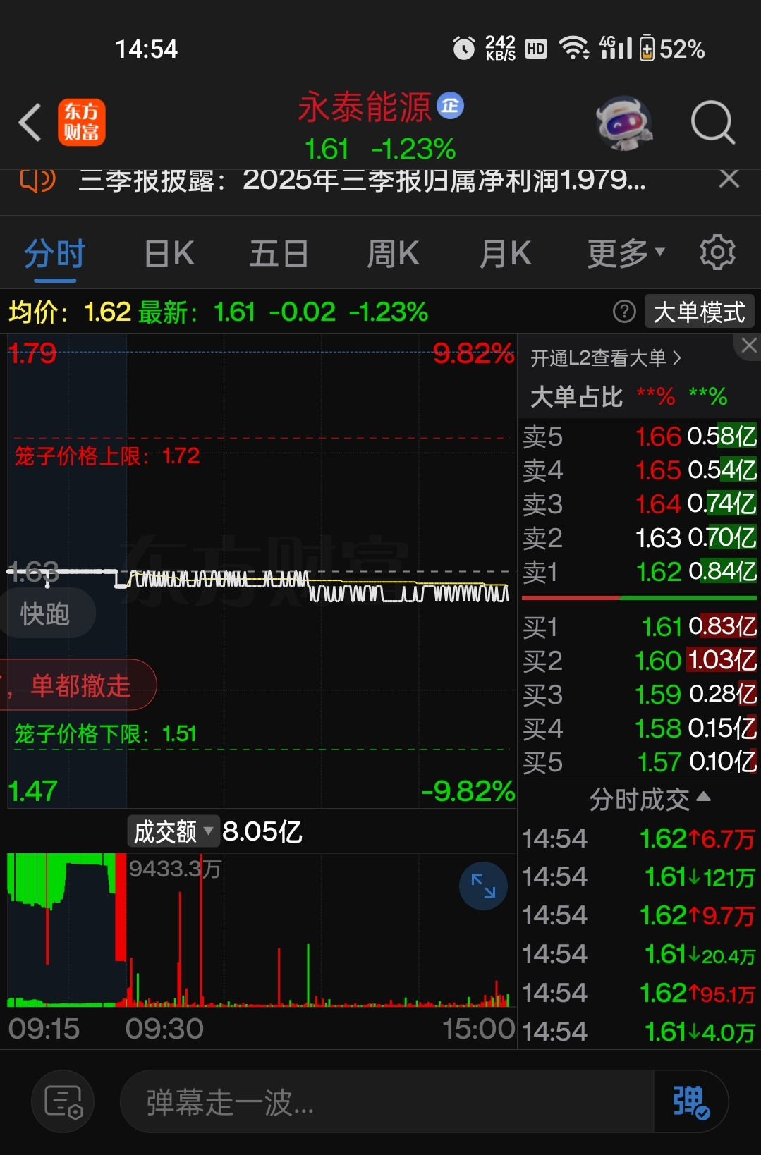 $永泰能源(SH600157)$ 差五分钟收盘,上下托单也撤走了,上边每个档位撤 1.2 千万,下边买一撤一个亿。
