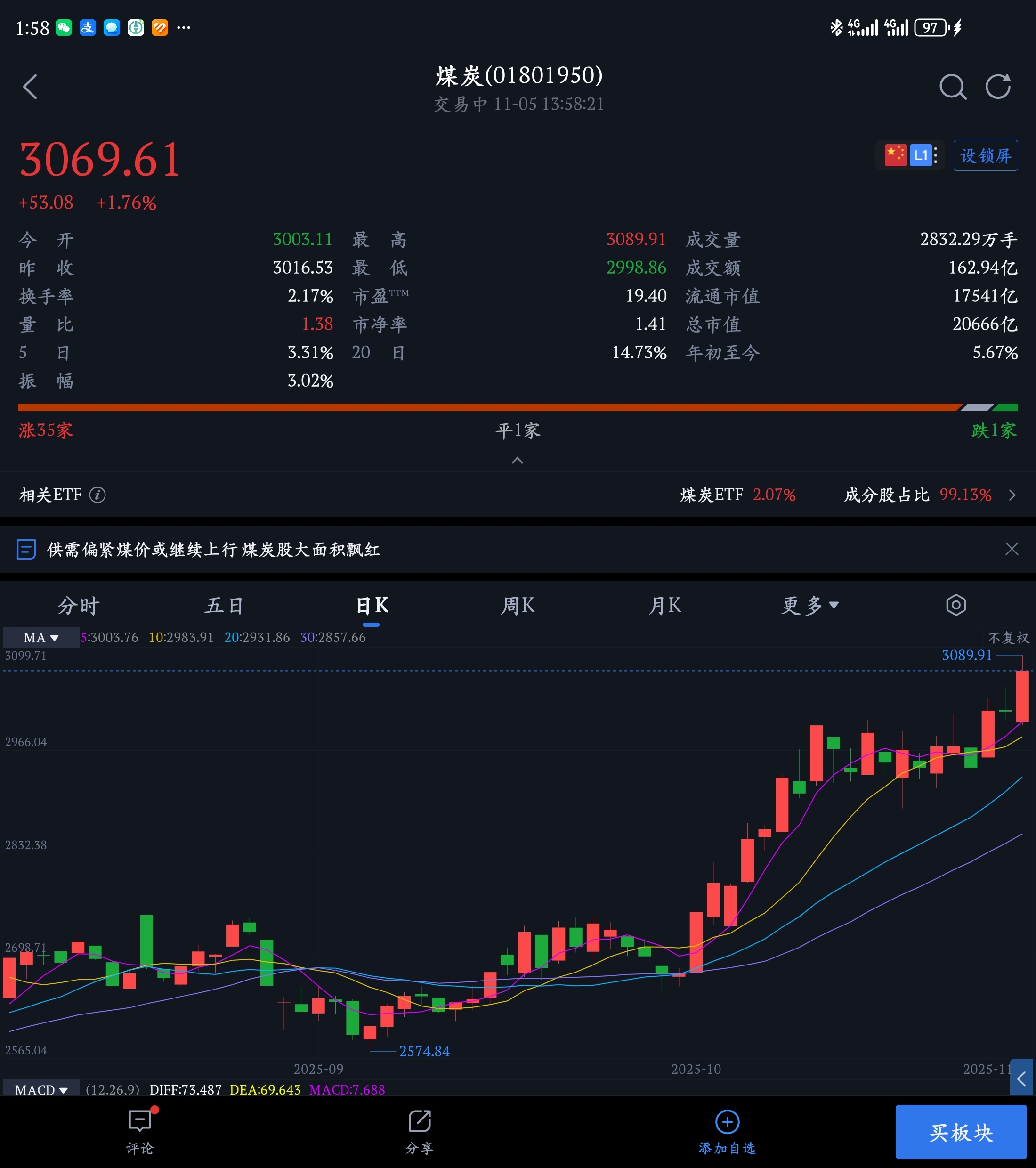 $永泰能源(SH600157)$ 煤炭板块的走势,再看看永泰能源的走势,还得跌回去