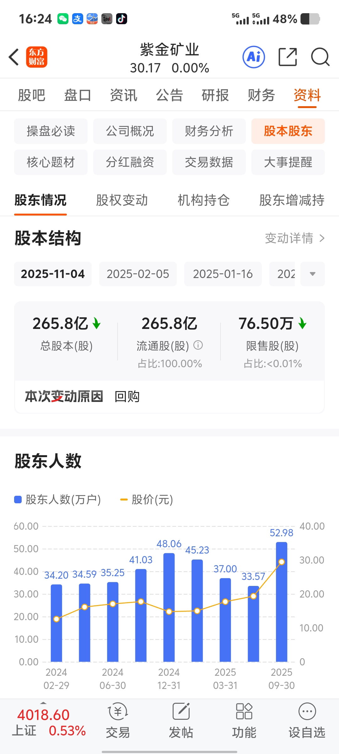 这票能涨吗,比紫金矿业的股东还多,庄能给散户抬桥吗想想如图
