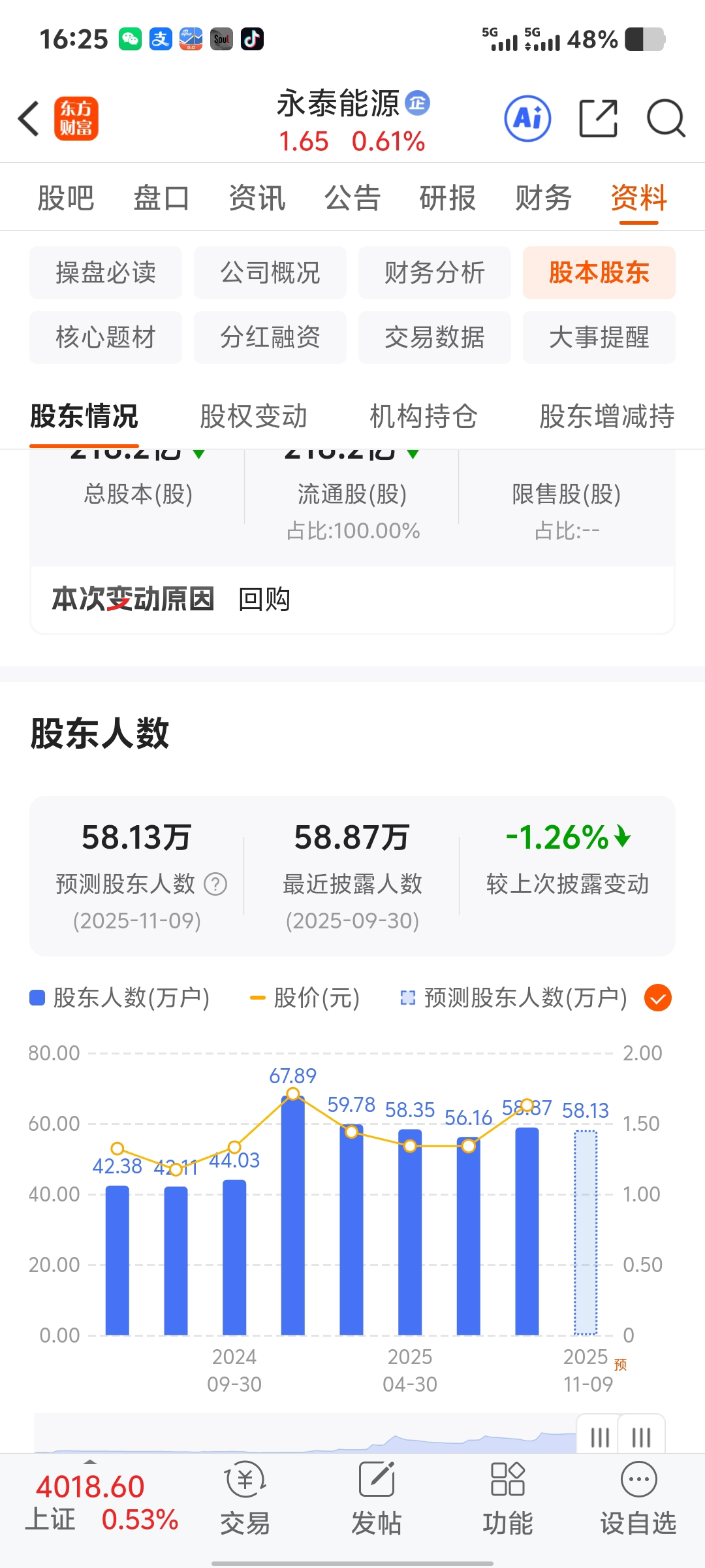 $永泰能源(SH600157)$ 这票能涨吗,比紫金矿业的股东还多,庄能给散户抬桥吗想想如图
