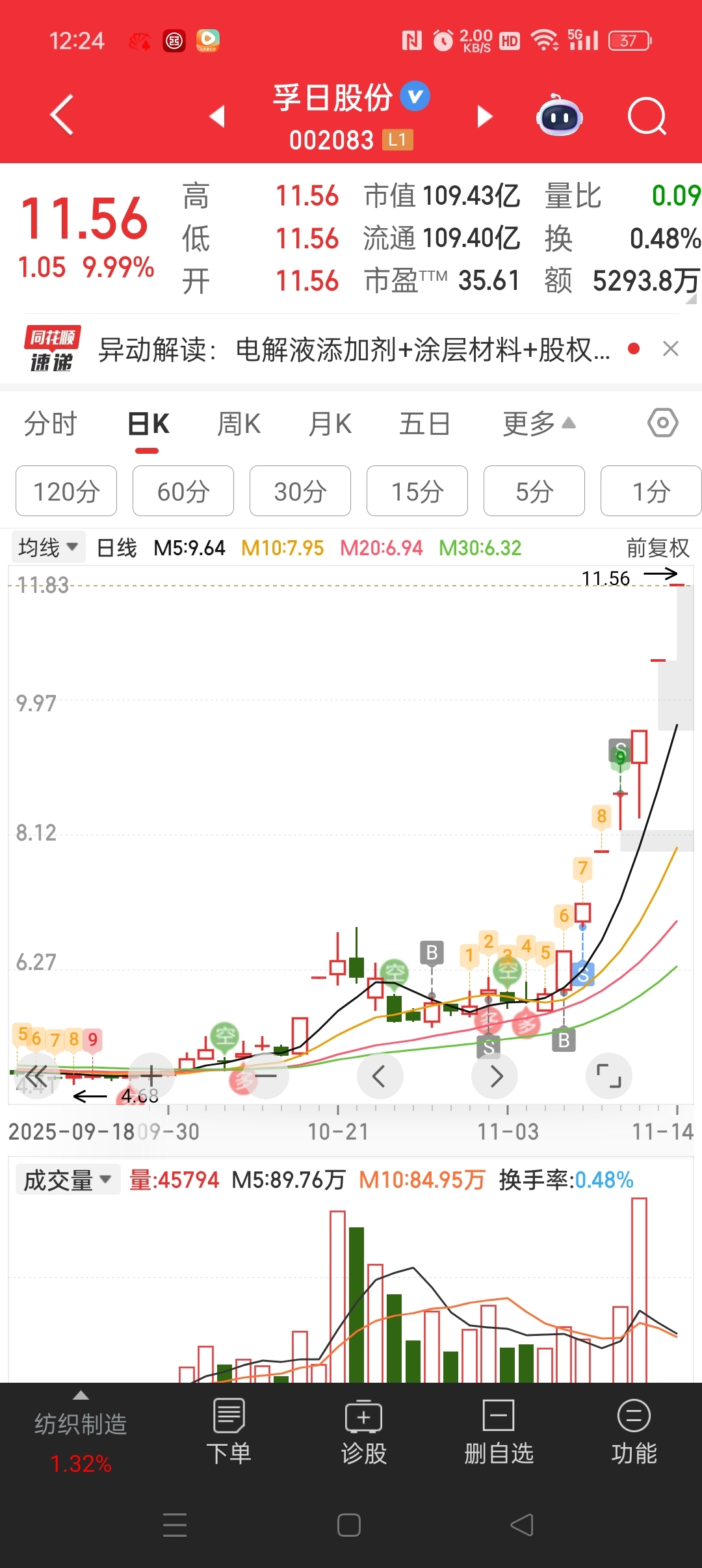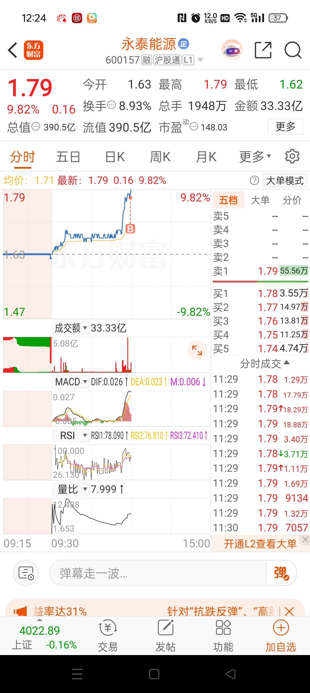 孚日满仓打板进去的第二天集合竞价出来一半第四板出完了后悔啊今天永泰能源满仓买进不