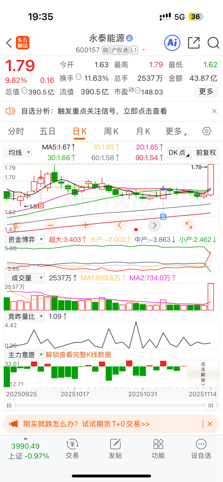 $永泰能源(SH600157)$ 万能逃跑涨停定律