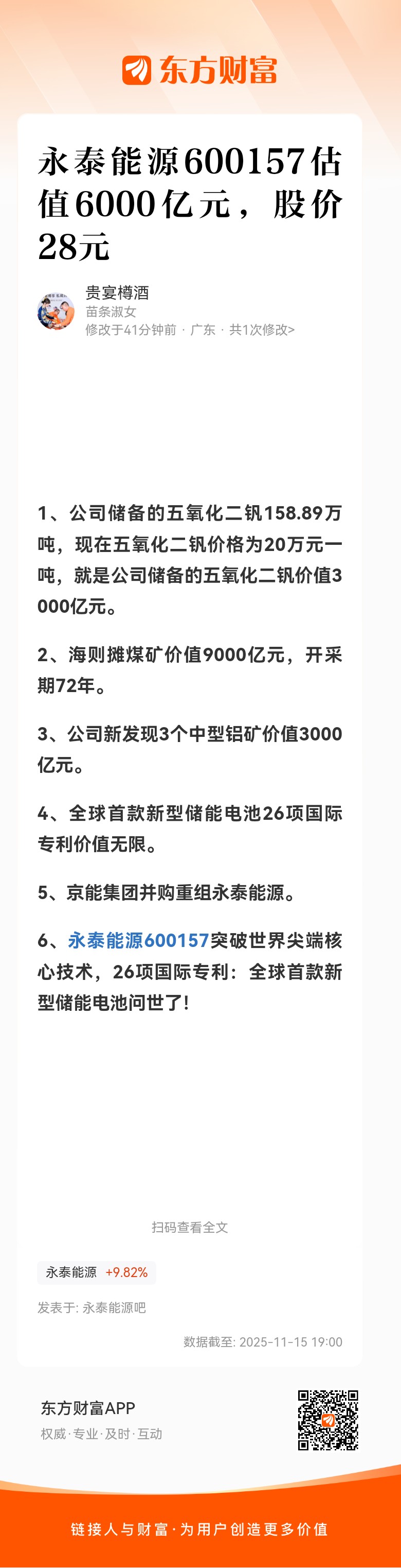 6、永泰能源600157突破世界尖端核心技术,26项国际专利:全球首款新型储能电池问世了!