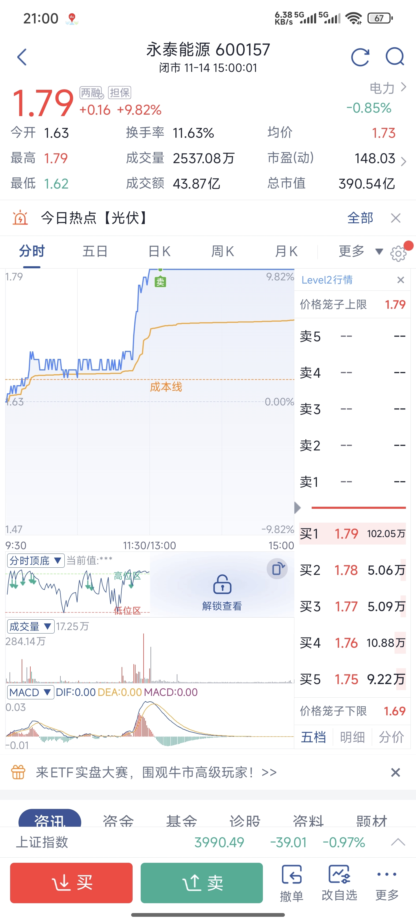 $永泰能源(SH600157)$ 气死了气死了,没涨想走,涨了走了又怕下星期大涨,按王广西的思想下周还是要低开让我进的