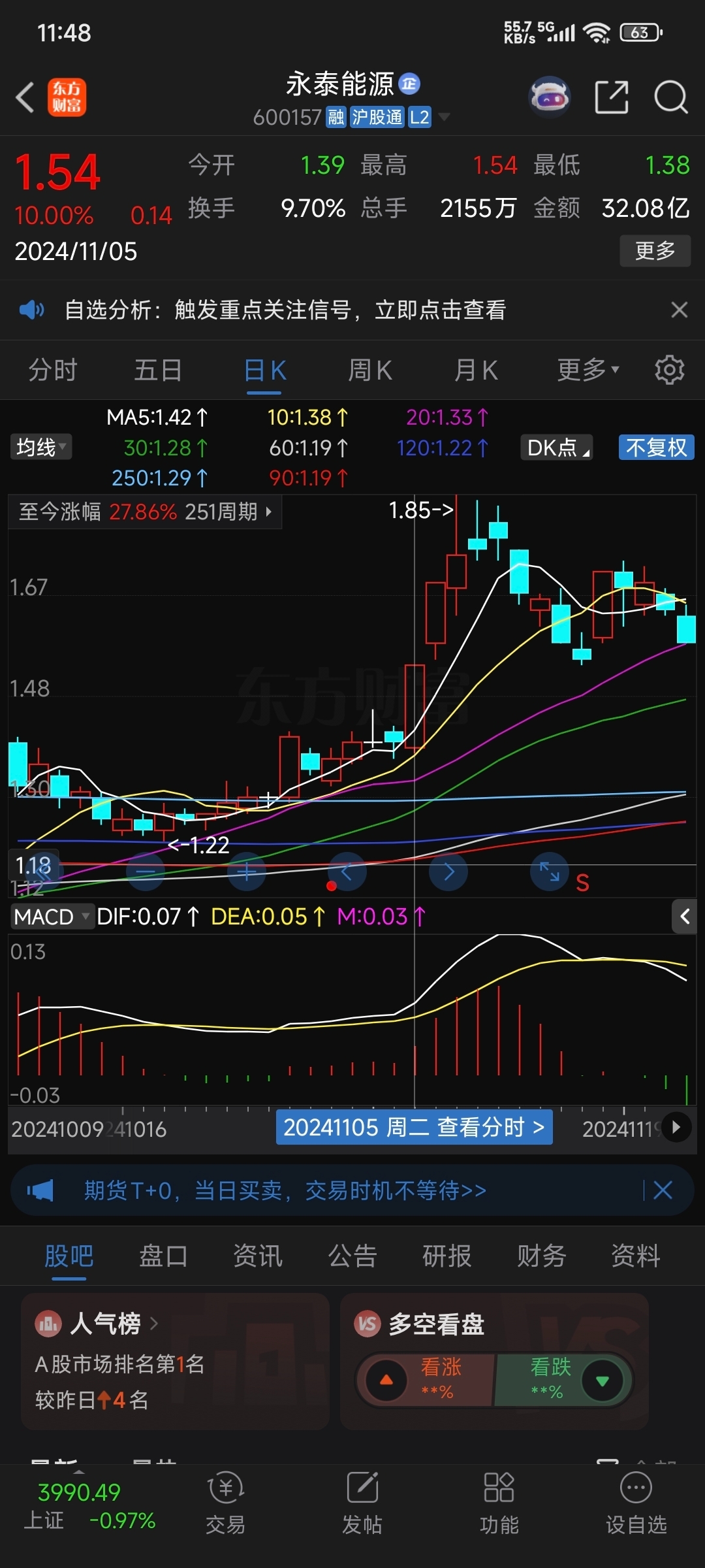 $永泰能源(SH600157)$ 去年11月5号及6号有过两连板,周一会历史重演,周3破2.14就会调整了,2026目标2.5-3元,最低1.7元左右,盘子大,有题材也有人气,可以看高一线