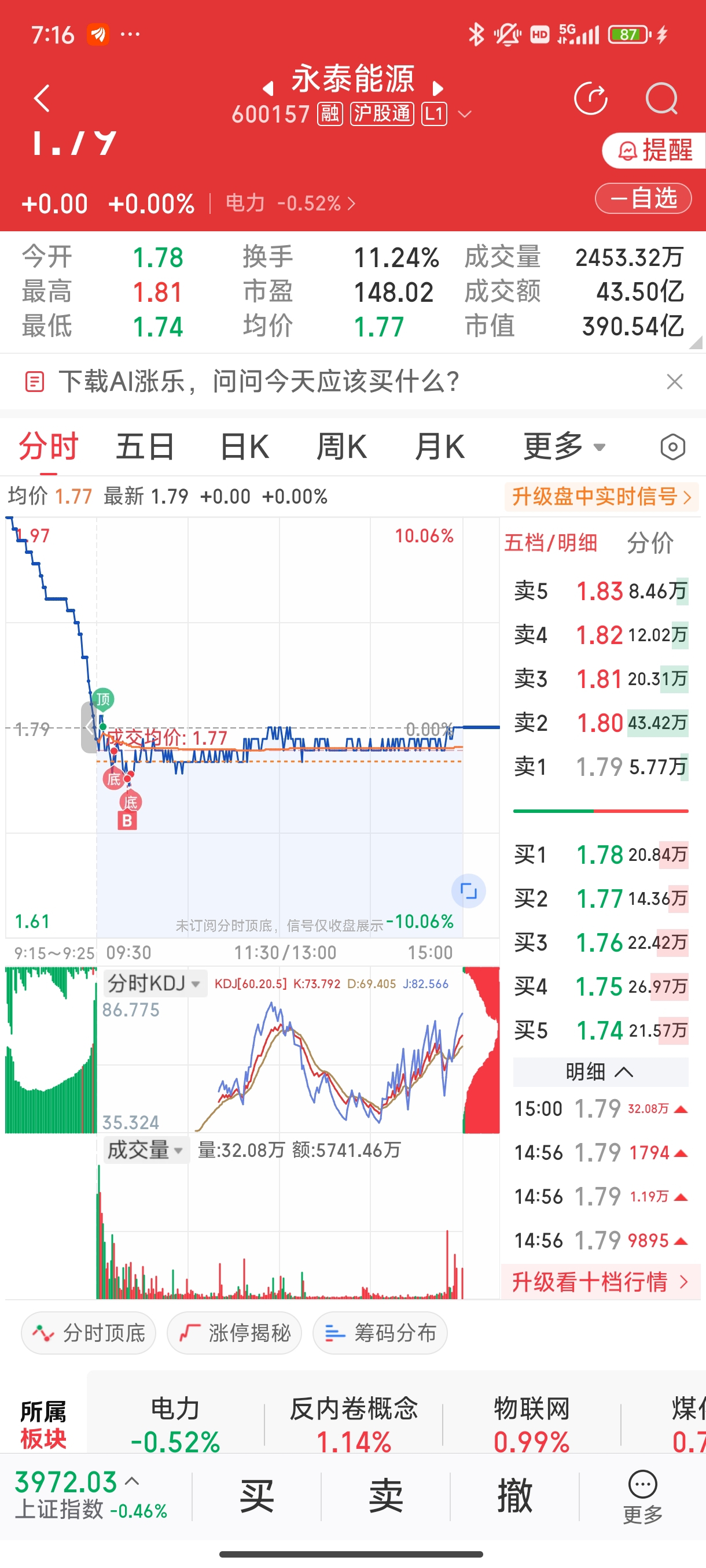 $永泰能源(SH600157)$ 尾盘集合竞价成交这么多手,怎么回事