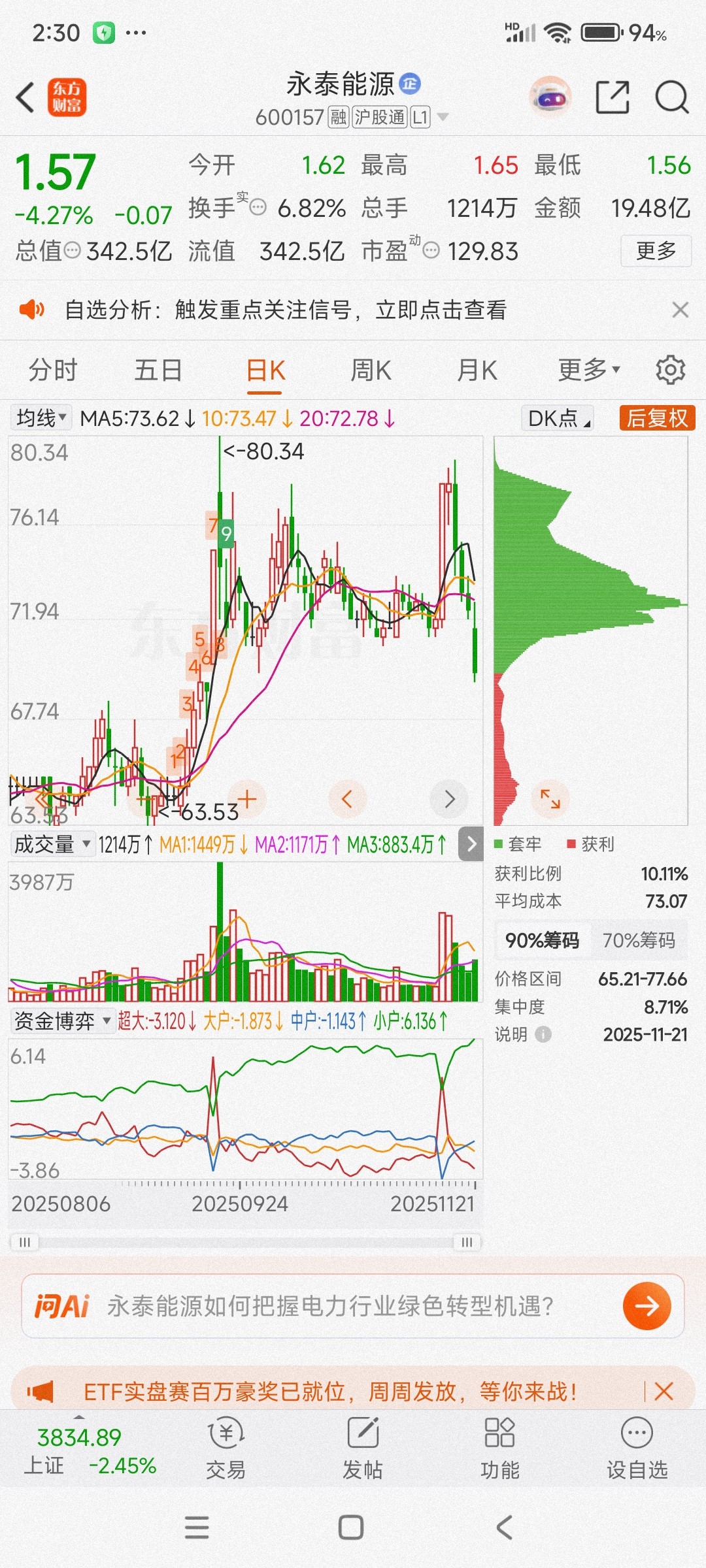 $永泰能源(SH600157)$ 哪位大神指点一下,我的日线界面怎么变成几十块价位了