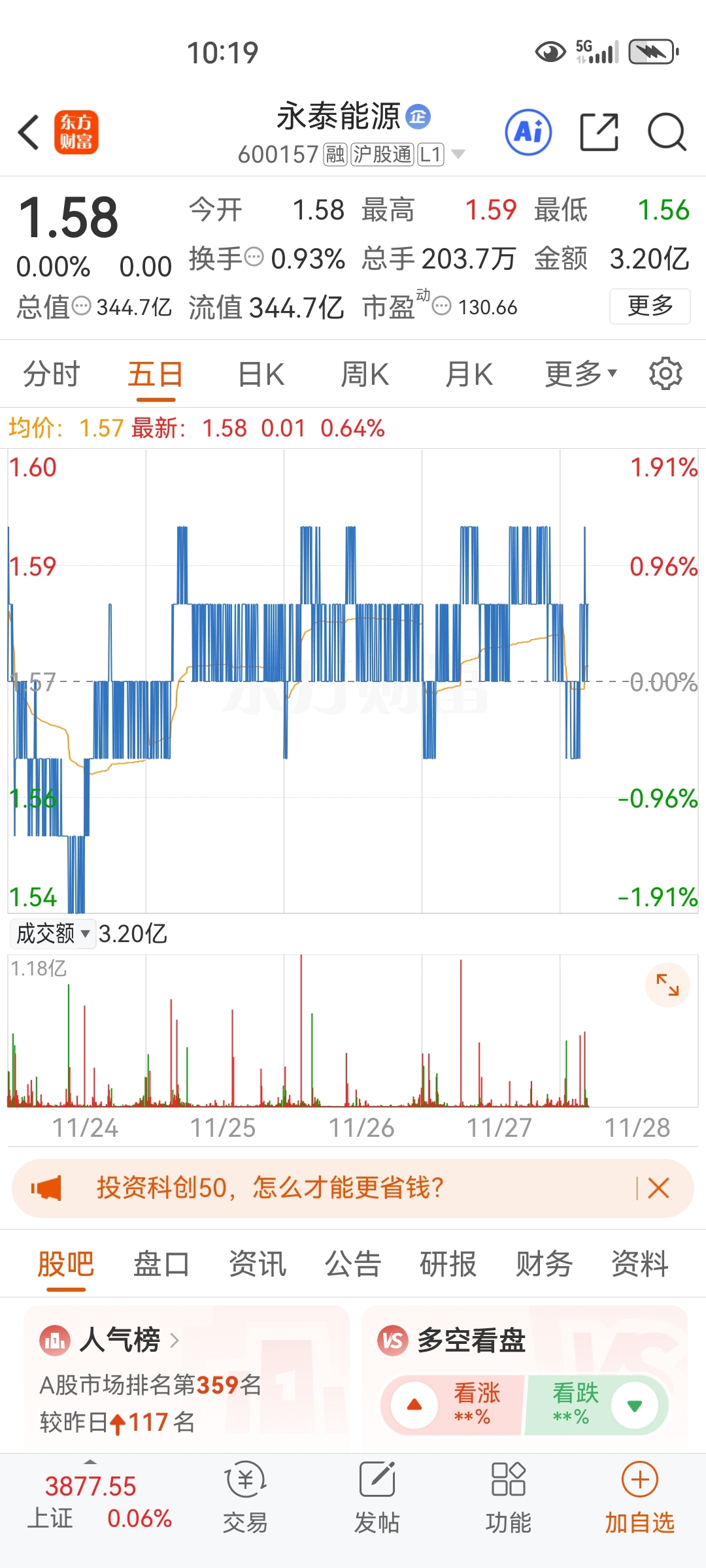 $永泰能源(SH600157)$ 5天了,,我赔个手续费俺走了,不陪你玩了