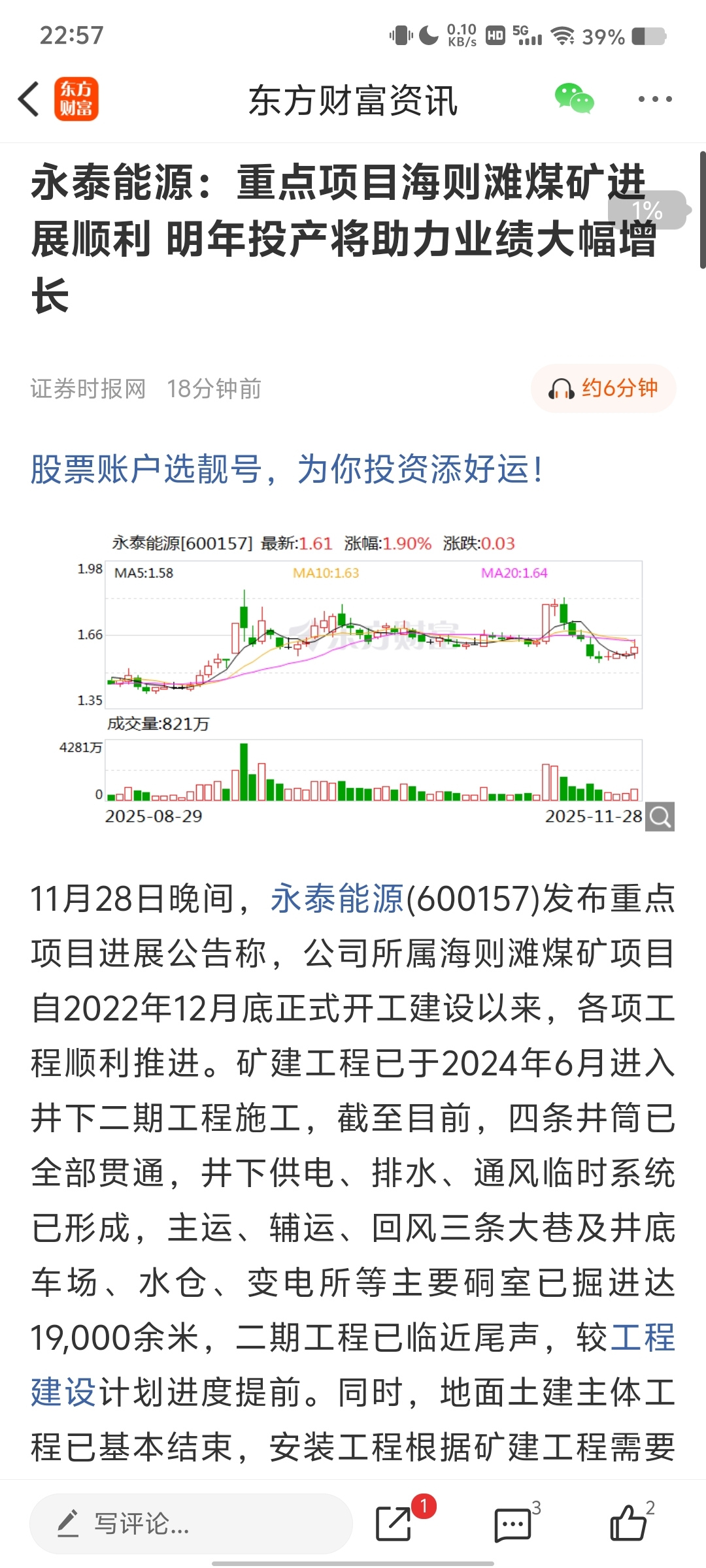 永泰能源:重点项目海则滩煤矿进展顺利明年投产将助力业绩大幅增长抓重点,重点项目海