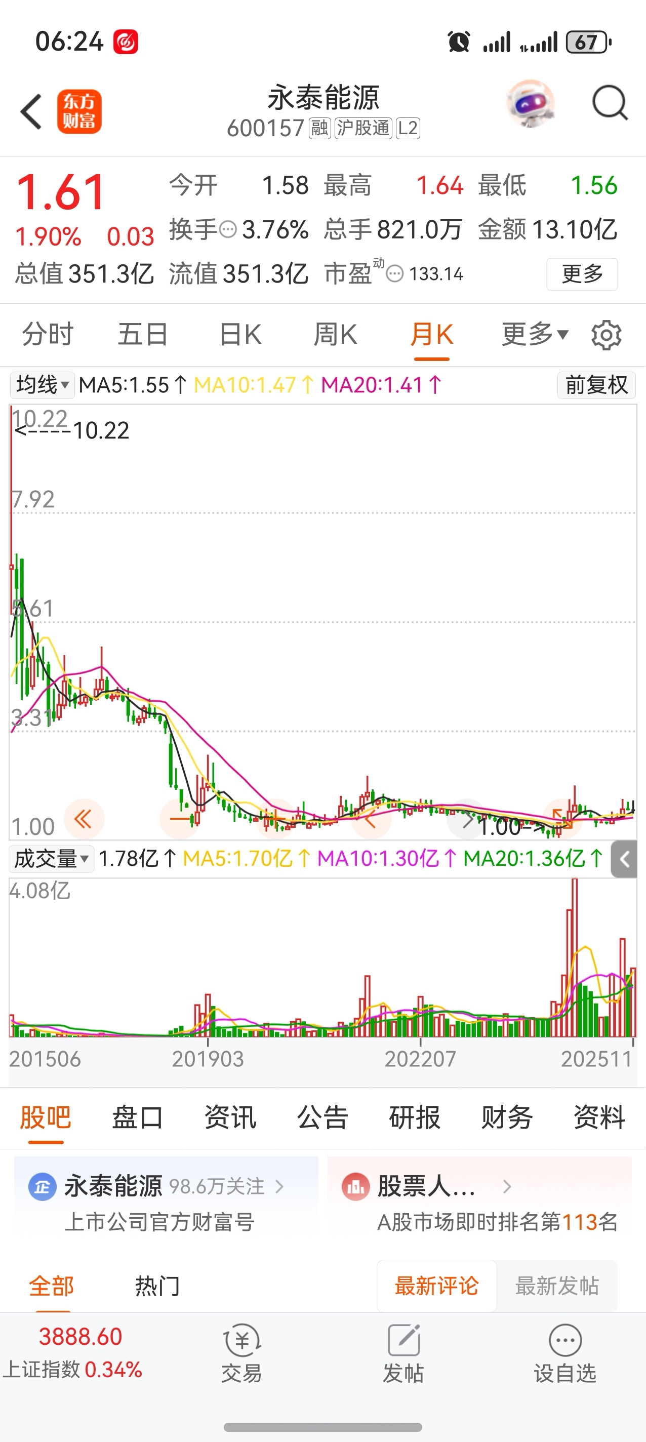 $永泰能源(SH600157)$ 我这是月K,这的股友们,怎么挺过来的