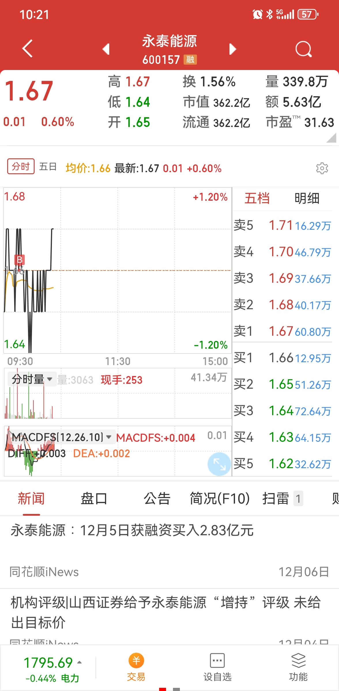 $永泰能源(SH600157)$ 买了,不看了,闹心。希望你稳健上涨