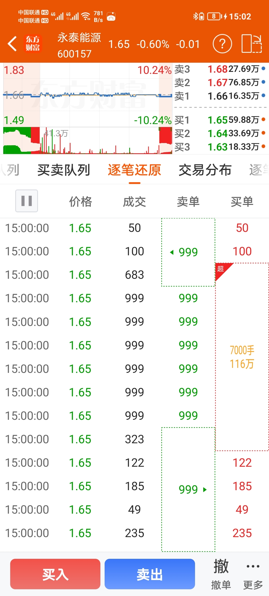 $永泰能源(SH600157)$ 挂单72手挂单999出货了!!!只能说666翻了999