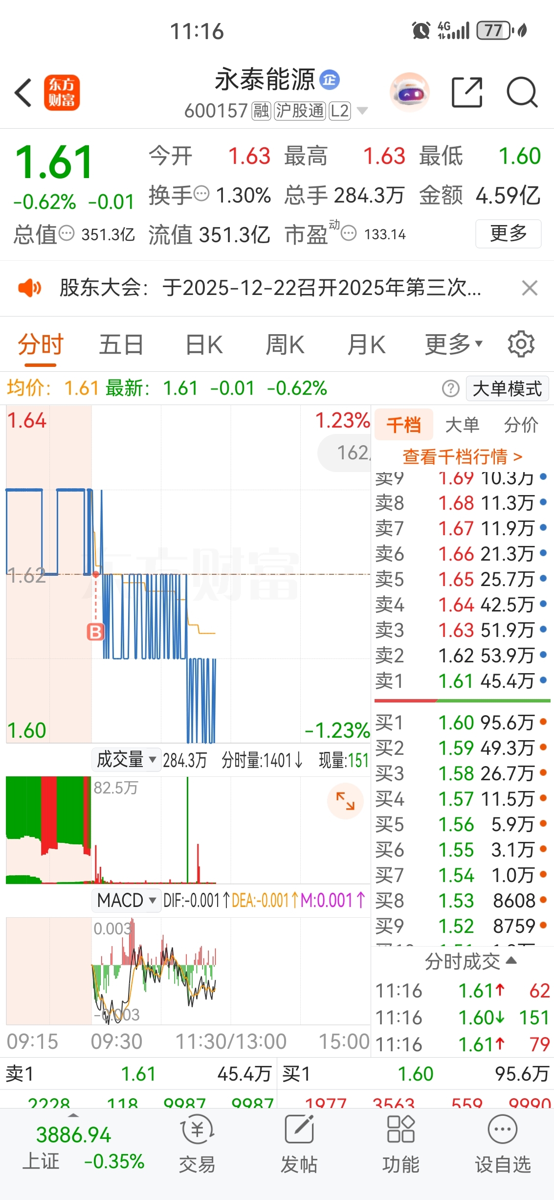 $永泰能源(SH600157)$ 什么情况一买就跌,不会跌到1.4吧