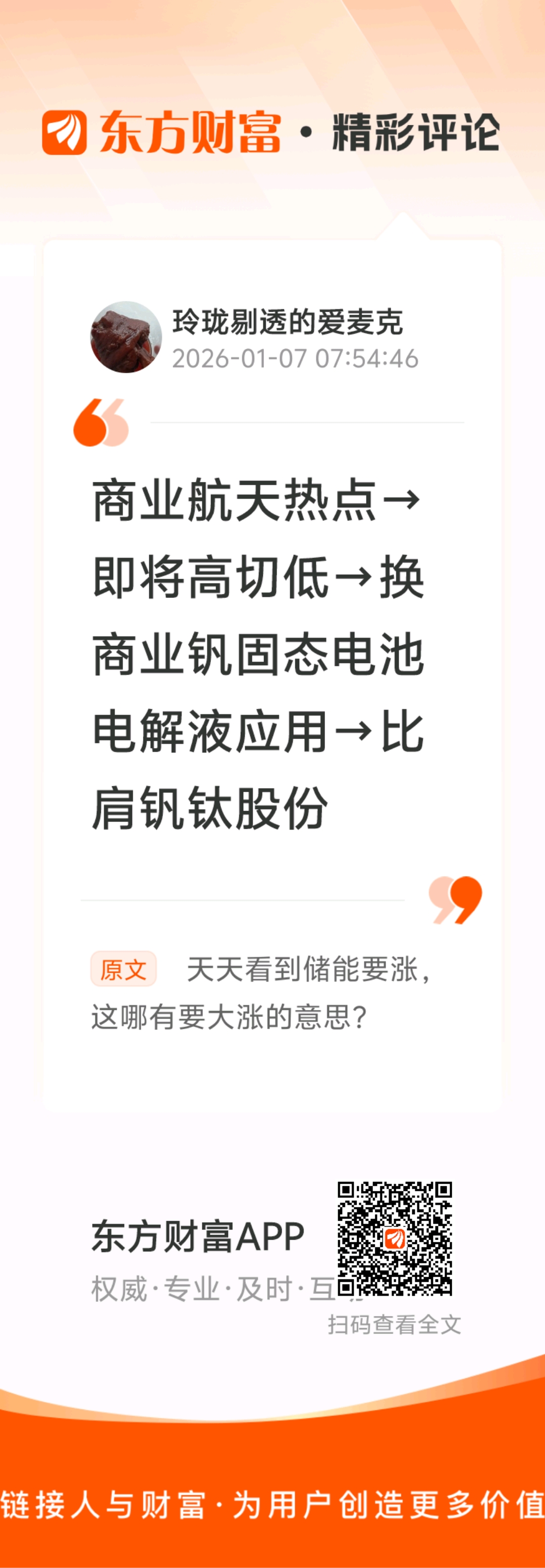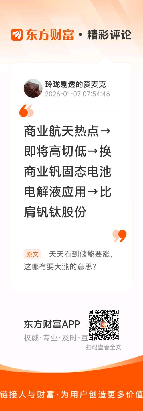//@玲珑剔透的爱麦克 :商业航天热点→即将高切低→换商业钒固态电池电解液应用→比肩钒钛股份