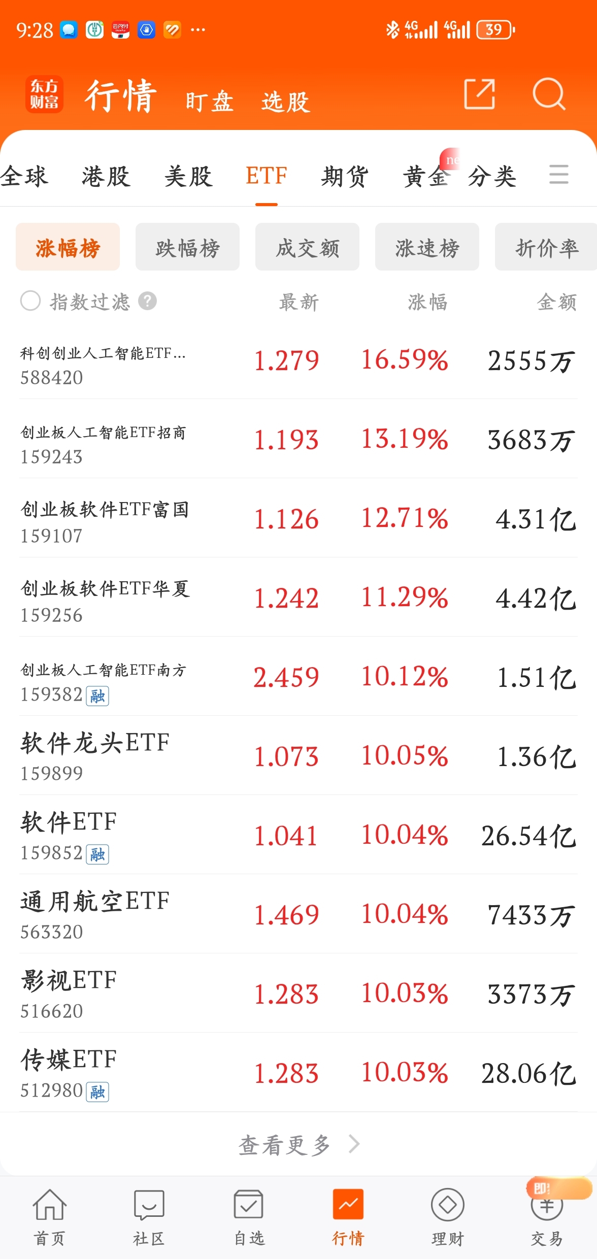 牛市来了,涨得你头晕目眩,不信你看今天ETF1/3涨停的
