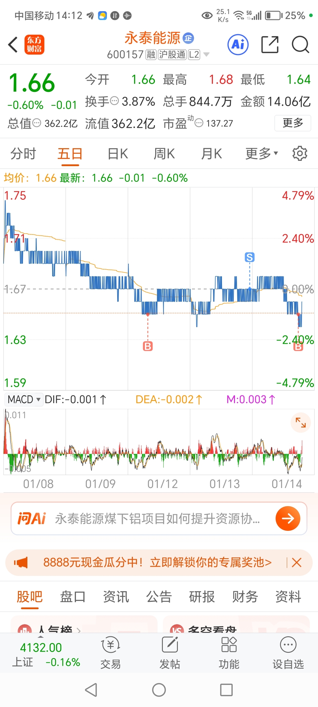 $永泰能源(SH600157)$ 一天一分钱,搞点零花钱,大的想不到,