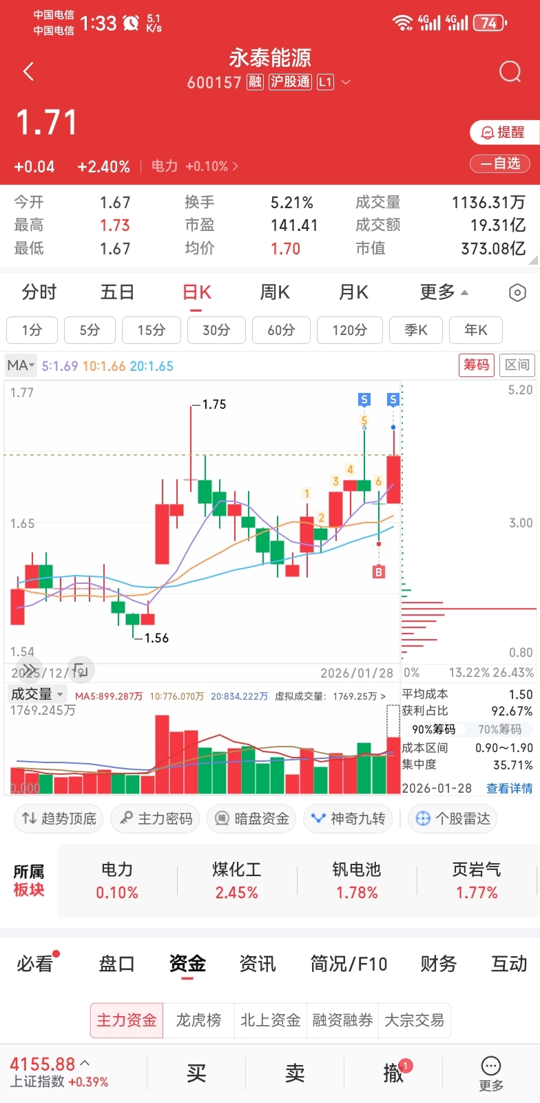 $永泰能源(SH600157)$ 1.73卖了,1.71不晓得能不能接回来,