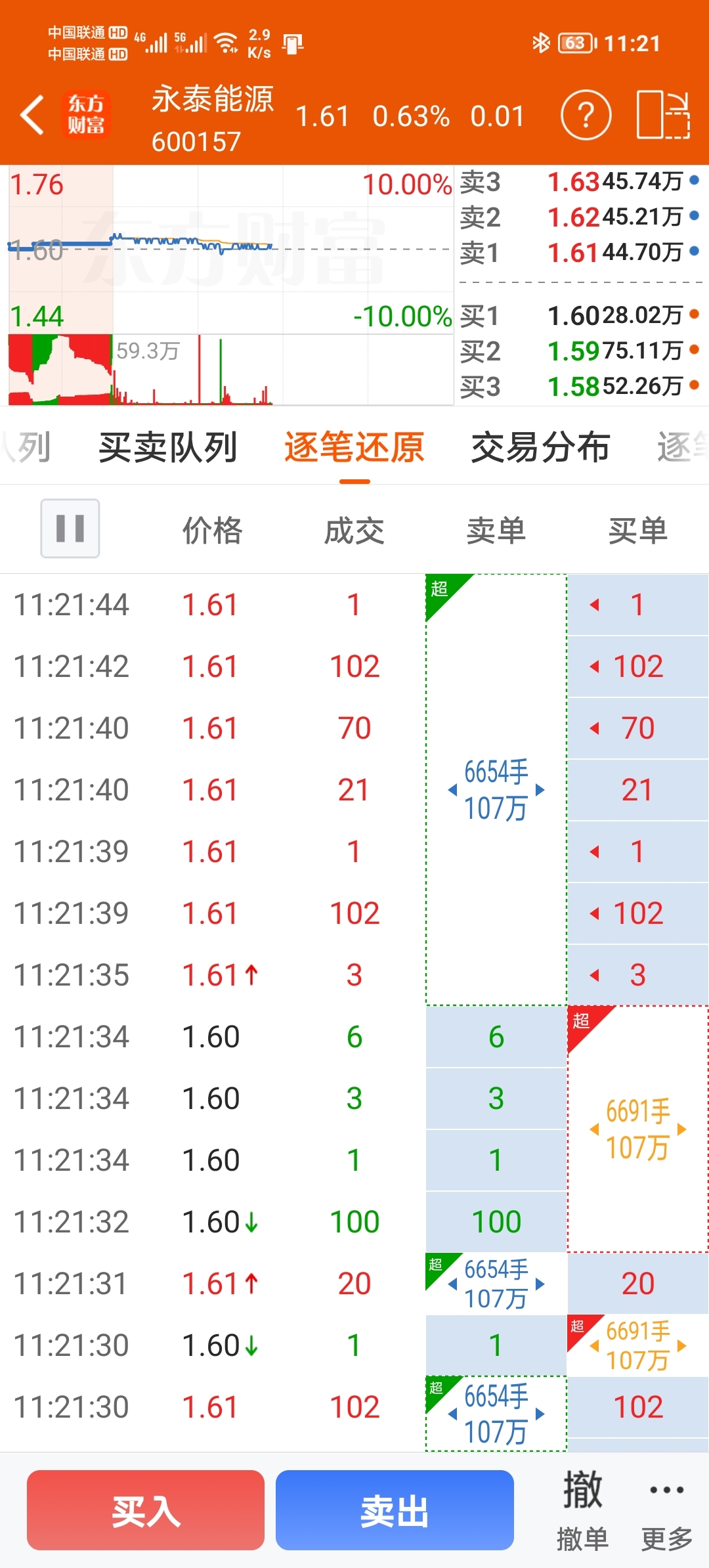 $永泰能源(SH600157)$ 超大单卖散户买,超大单买散户卖来回一分钱刚好做个T