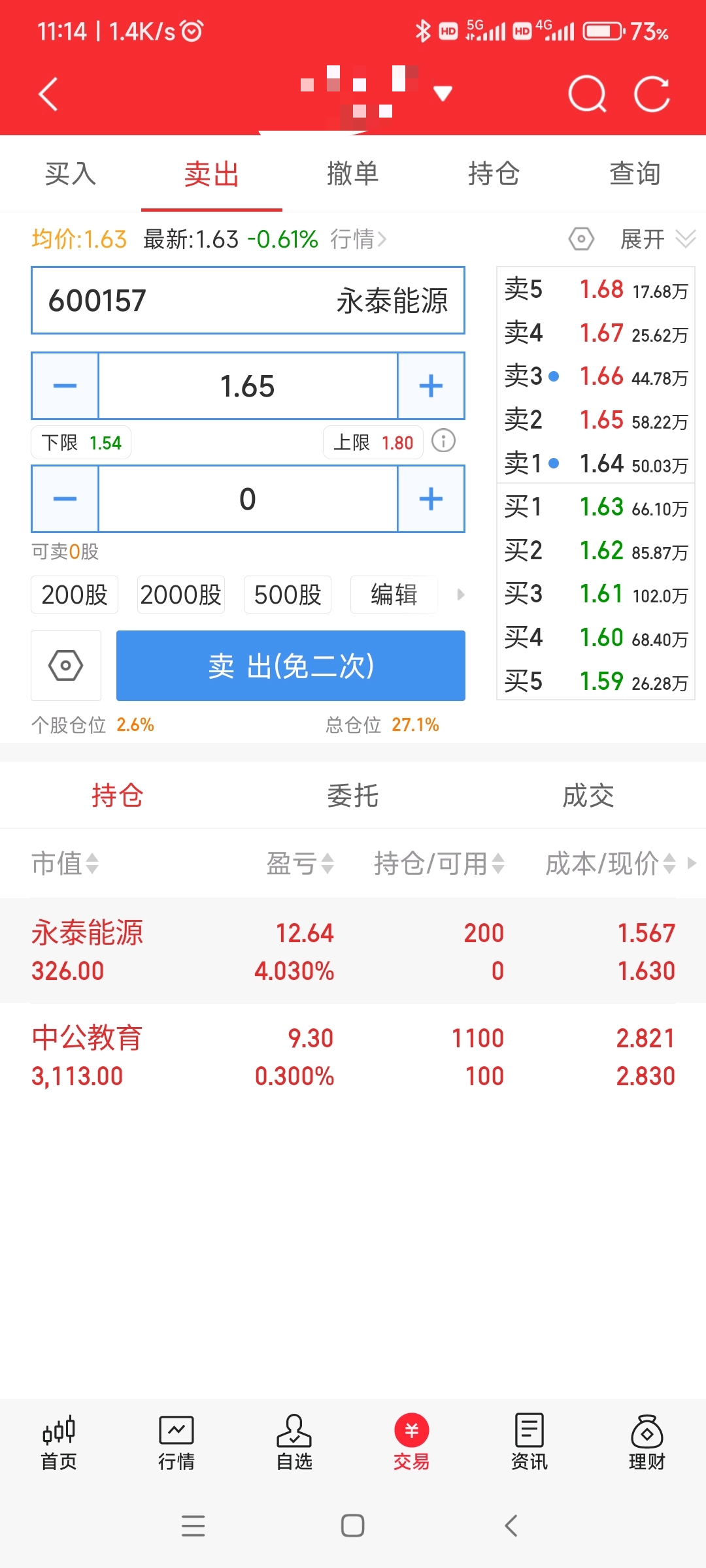 $永泰能源(SH600157)$ 委托一上午了,愣是没卖掉,赶紧清仓回老家过年了…就差这点路费了!!!