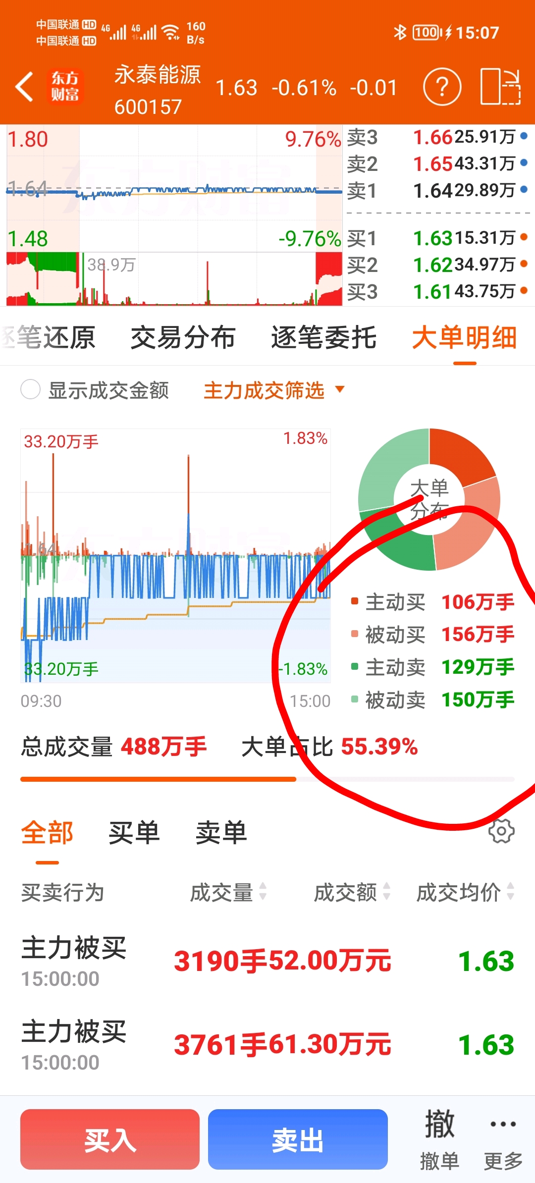 $永泰能源(SH600157)$ 今天买买差不多被动卖164占了很大一部分吧