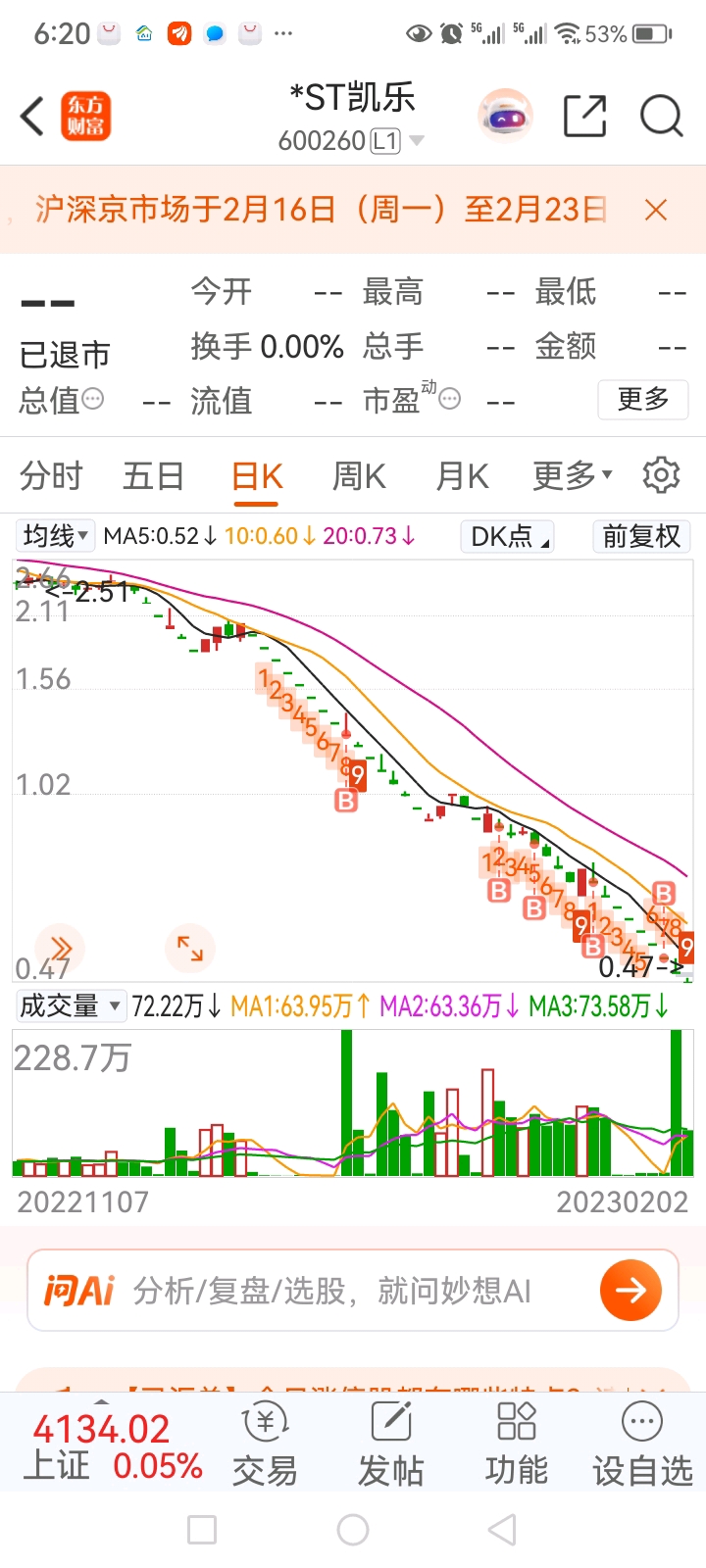 我曾经执着的相信凯乐,结果他退市了,我却还在里面一个多w!