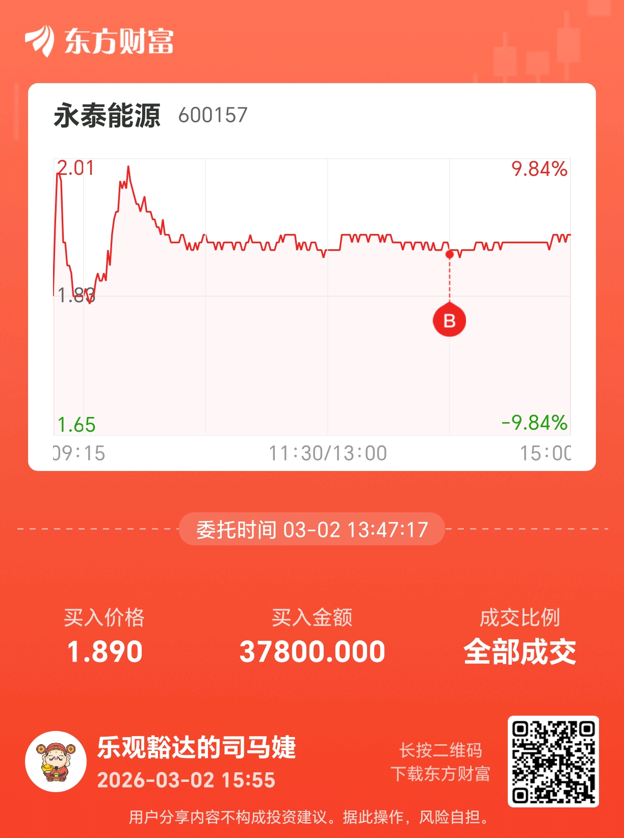 温馨提示: 1.根据《证券法》规定,禁止编造、传播虚假信息或者误导性信息,扰乱证券市场;2.用户在本社区发表的所有资料、言论等仅代表个人观点,与本网站立场无关,不对您构成任何投资建议。用户应基于自己的独立判断,自行决定证券投资并承担相应风险。《东方财富社区管理规定》