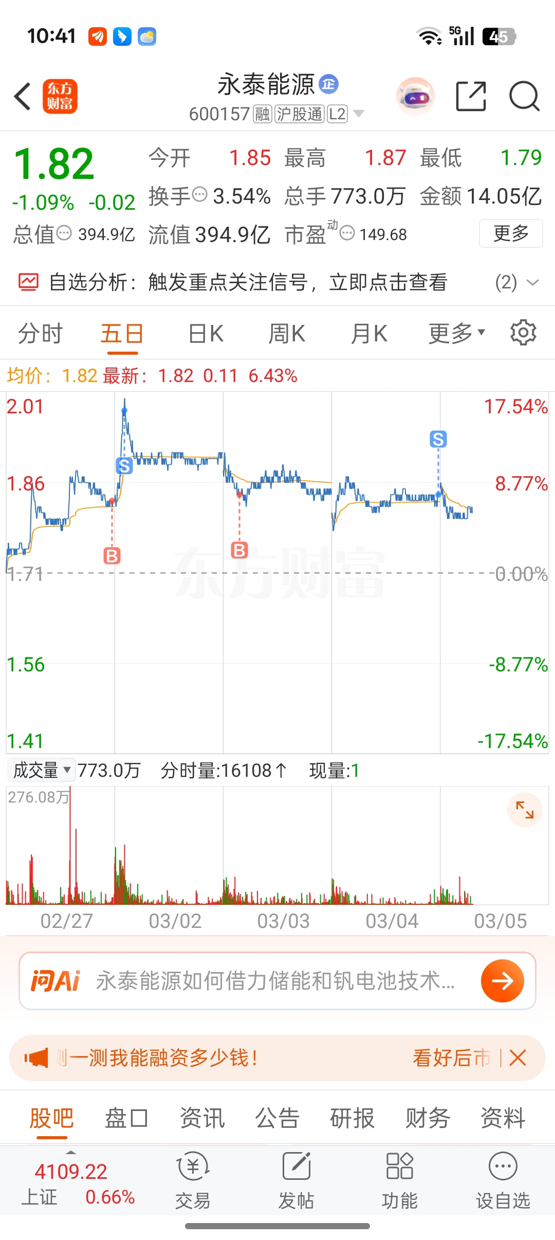 $永泰能源(SH600157)$ 你摆烂,我就不跟了你敢再砸一点,我就抄回来。