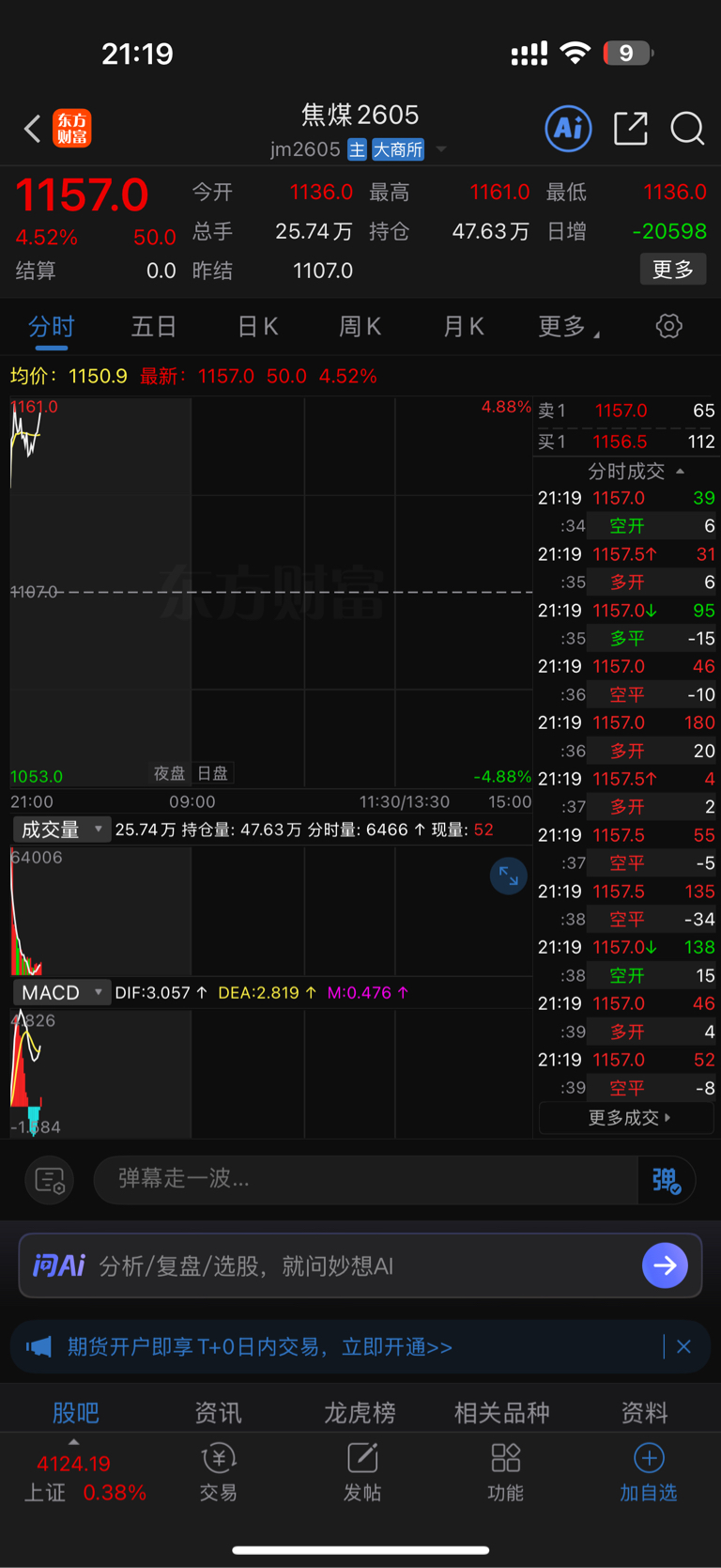 今天盘中晓晓多次在公屏中打出今晚焦煤要暴涨,让大家抢筹,看看竞价尾盘大资金的态度,