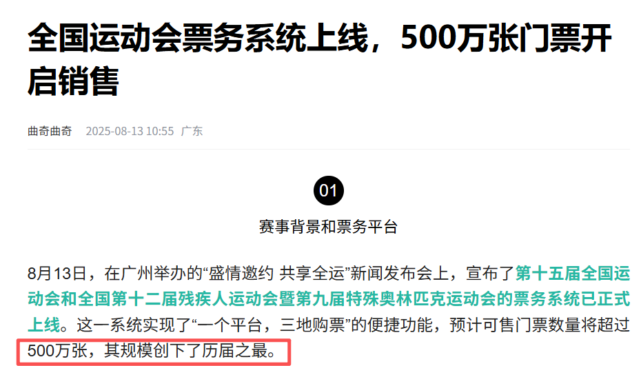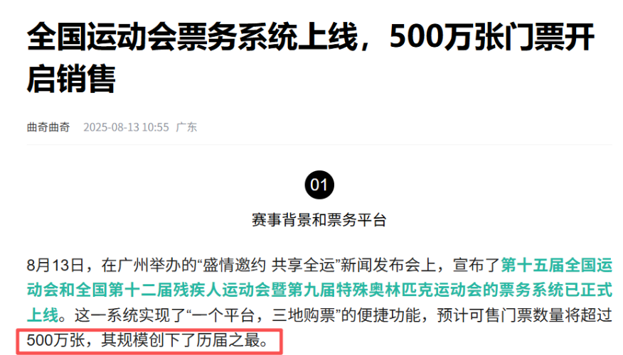 中体产业重大更新,全运会黑马,十五届全运会是中国有史以来最大规模的运动会,门票超