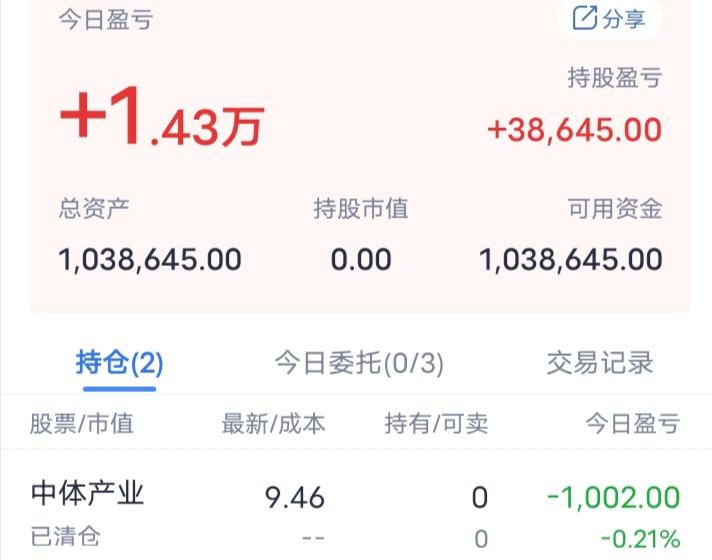 $中体产业(SH600158)$ ,模拟盘都亏了,实盘亏惨