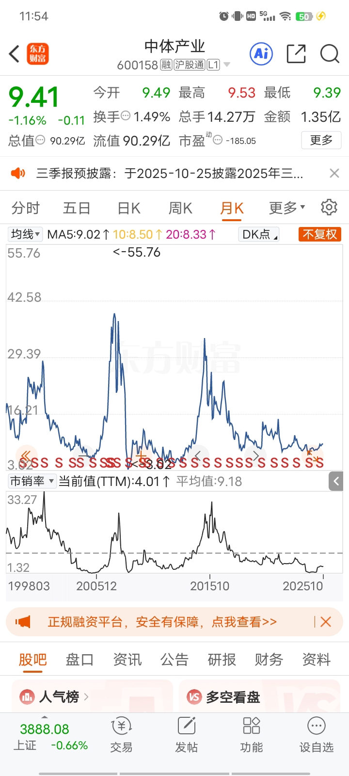 $中体产业(SH600158)$ 已经经历了两波大牛市,第一波50元,第二波40元,理论上第三波45元