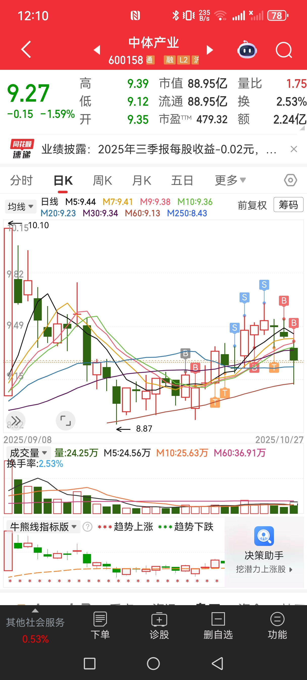 $中体产业(SH600158)$ 原计划9.3买够三成仓,既然给了低价的机会,就调整计划买到五成仓,明天看看有没有9.1以下的机会,有就买到七成仓位。这么好的质地,中字头,全运会世界杯,七万亿产业规模,国字头体育资产证券化唯一标的,我一个小散户的目标是20,看看主力志向有我远大没