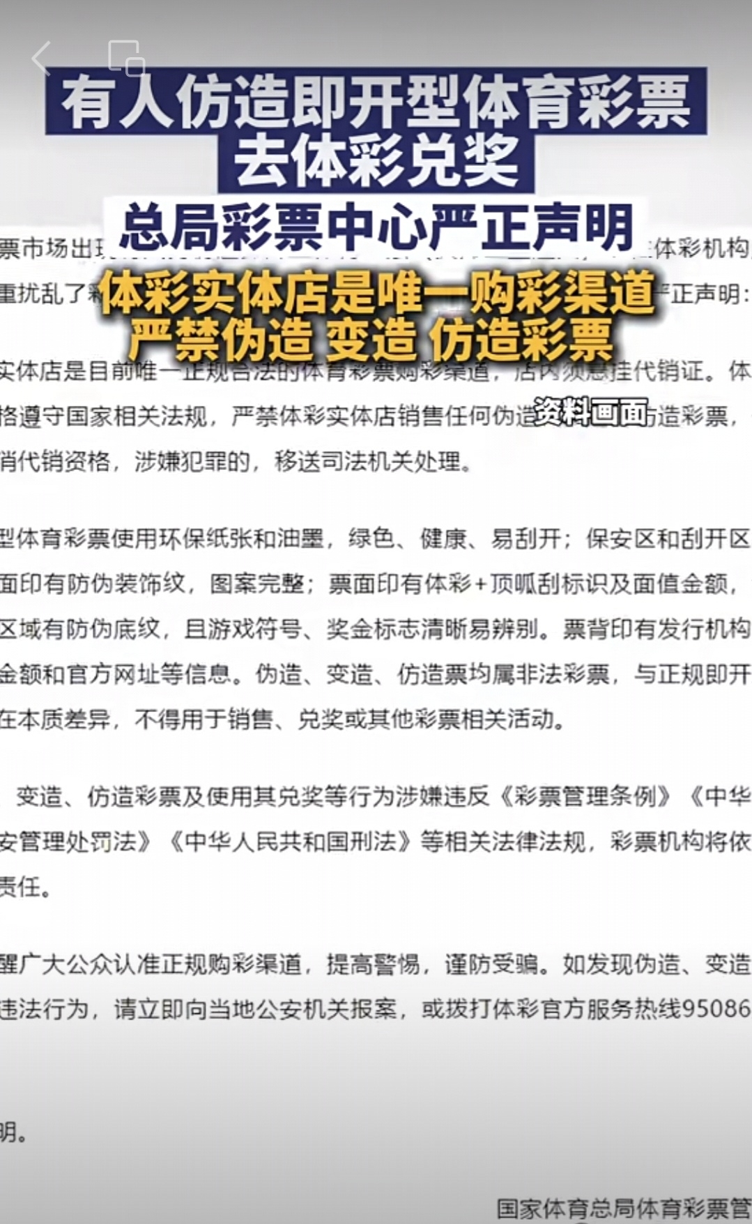 本月连发两次没有互联网购彩,严厉打击定性为违法犯罪,重申只有实体店唯一购买渠道。