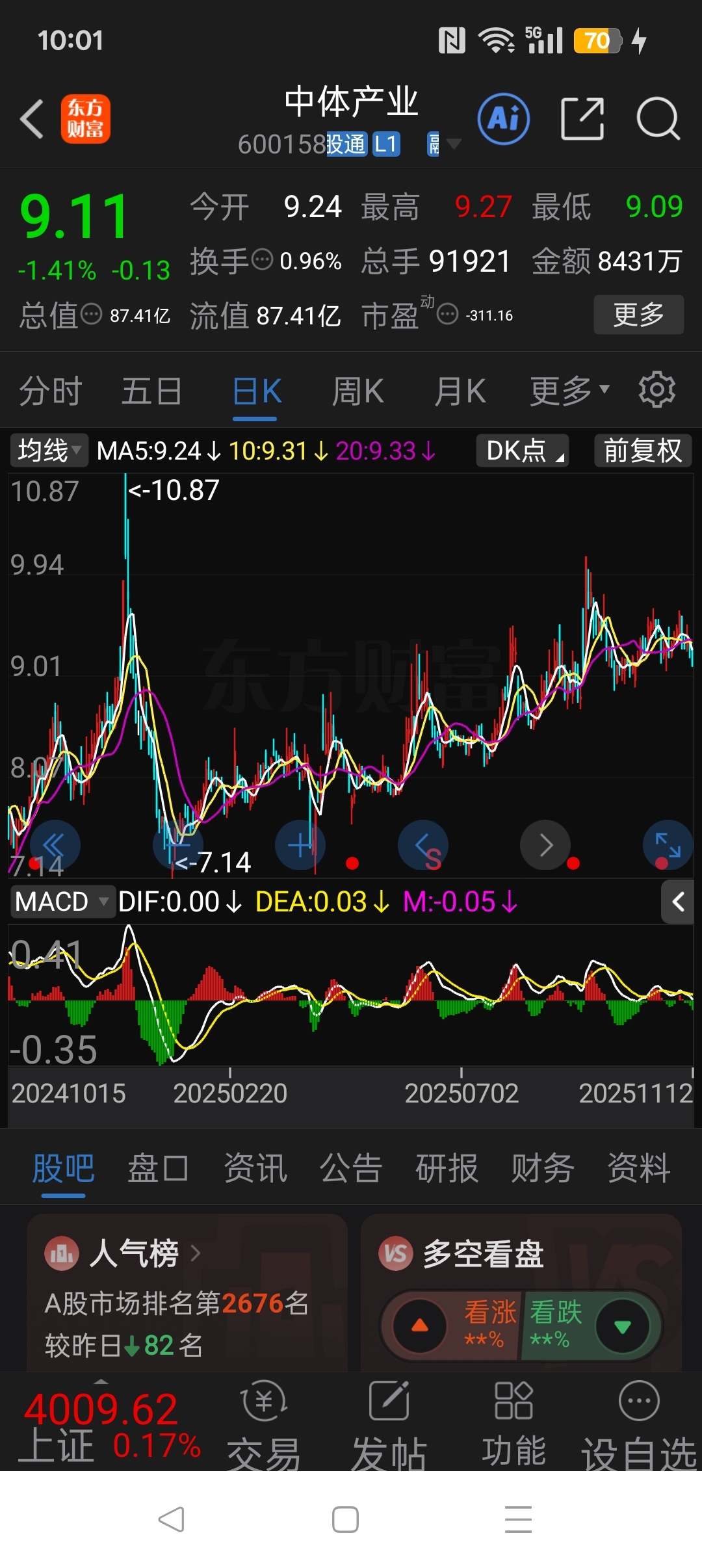 昨天我就说过下跌中继日线,周线级别的调整,而且下跌刚刚开始。还有人觉得什么9.2