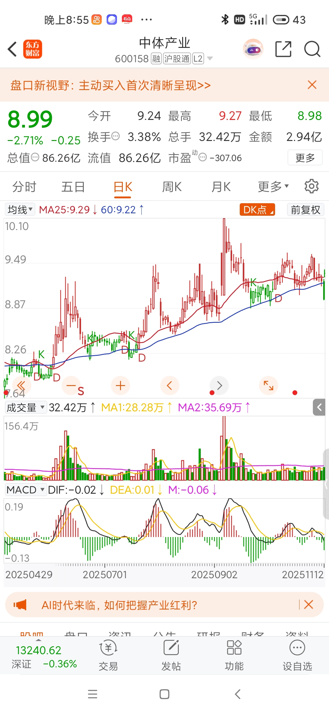$中体产业(SH600158)$ 兄弟们,主力在挖坑了