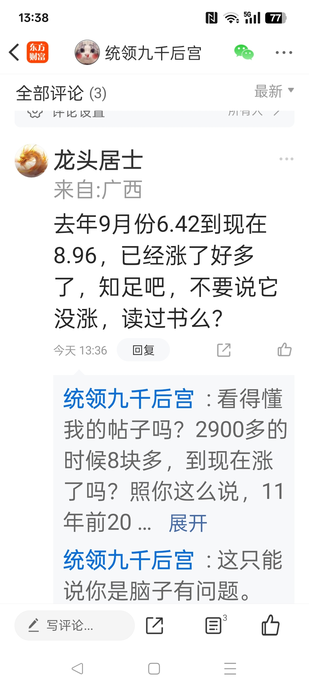 @龙头居士 你说中底从去年6块多到现在涨了很多。那我问你为什么现在4020点,它比去年3100点还低了七八个点?现在4000多点,为什么价格在去年2900多点?那去年2900多点和去年3100点买的,他们就没有挣钱对他们来说难道是涨了吗?回到14年4000点,他30块,到现在如果长期持有,他亏了多少?他涨了吗?指数涨了,他涨了吗?