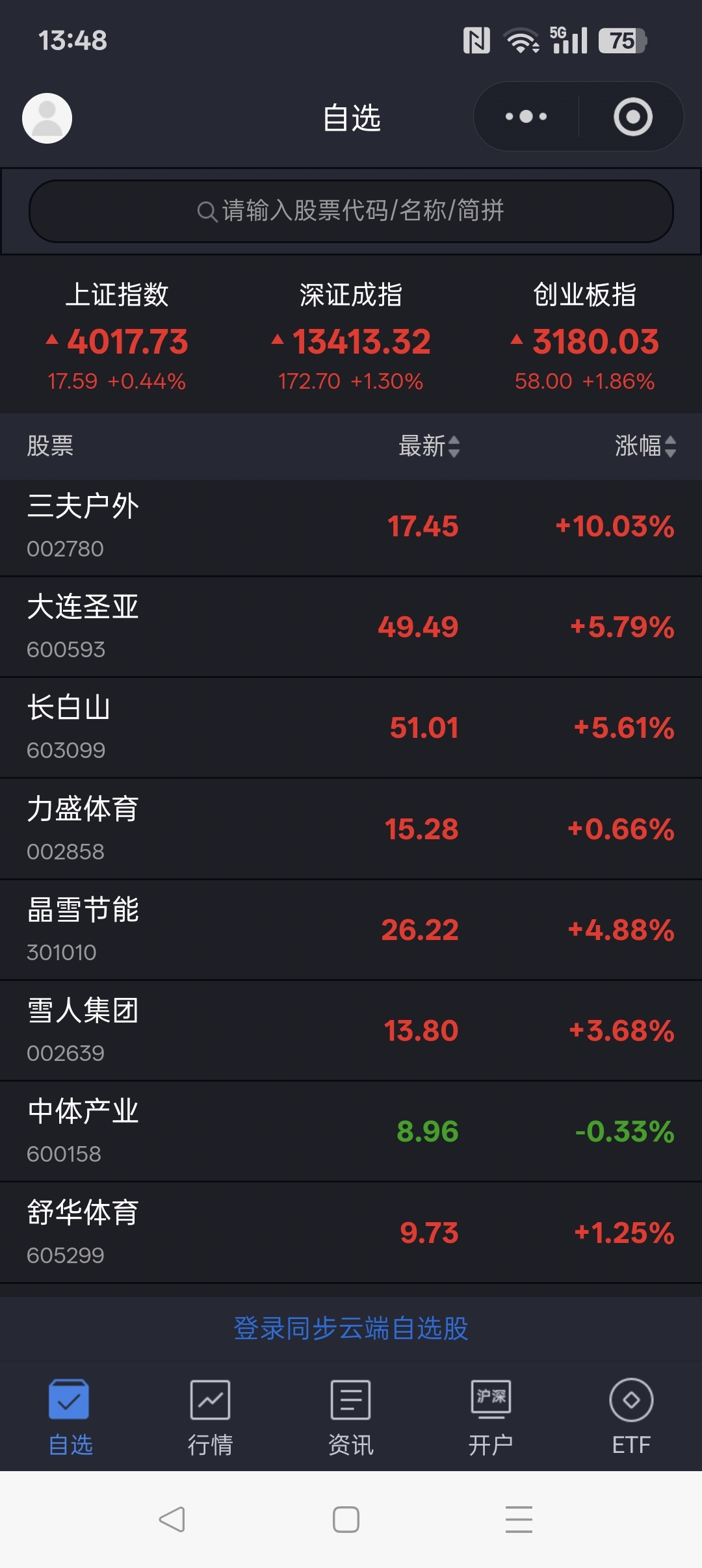 三夫户外几秒钟拉涨停。其他体育股也是直接从下跌拉到上涨。冰雪板块也是大涨,中体还