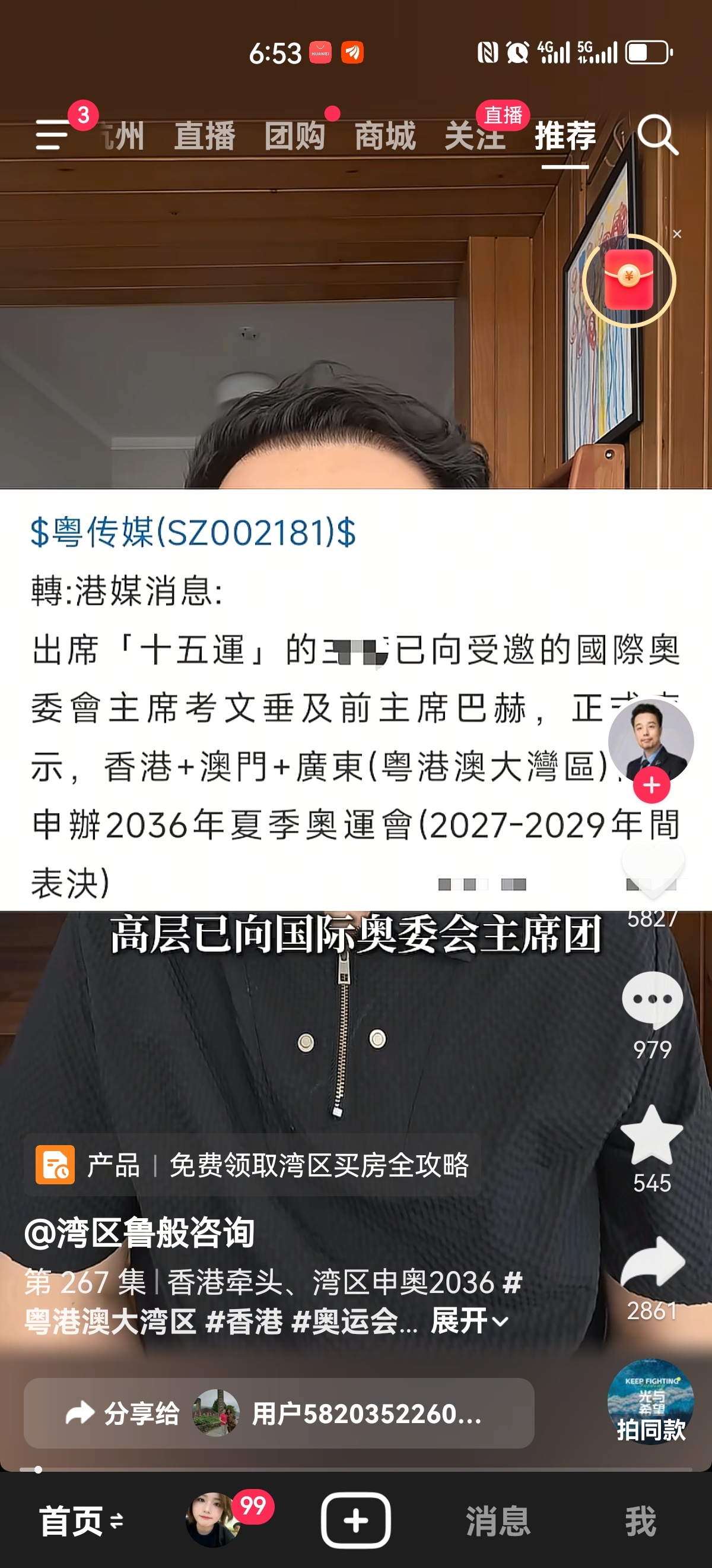 $中体产业(SH600158)$ 大湾区广东香港澳门联合申报2036夏季奥运会