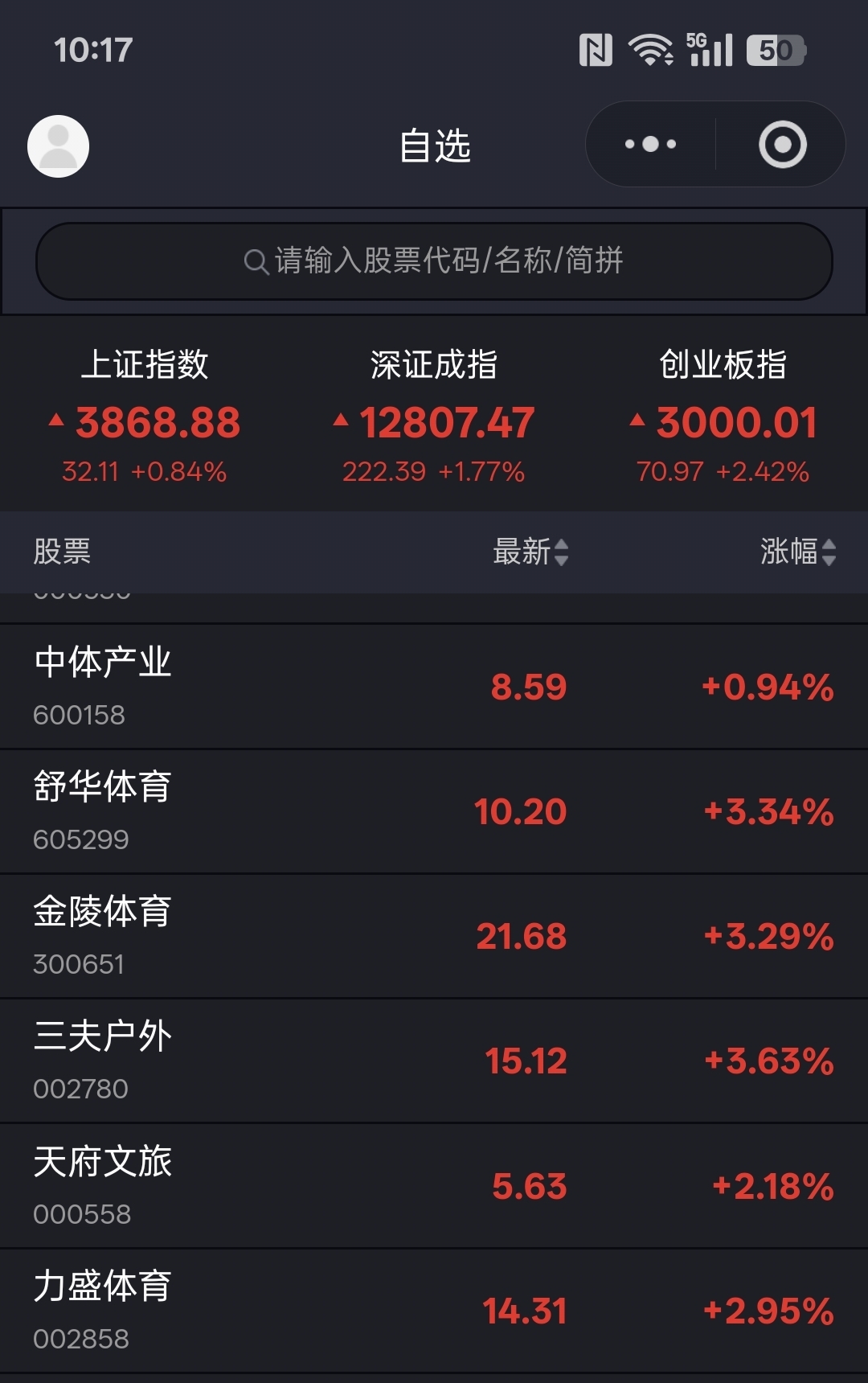 体育股刚刚大涨,舒华体育直接搞到涨停板回落,其他也冲到四个多点,5个多点就是中体没涨。