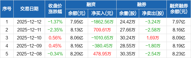 中体产业:融资净偿还1862.56万元,融资余额7.95亿元(12-12)